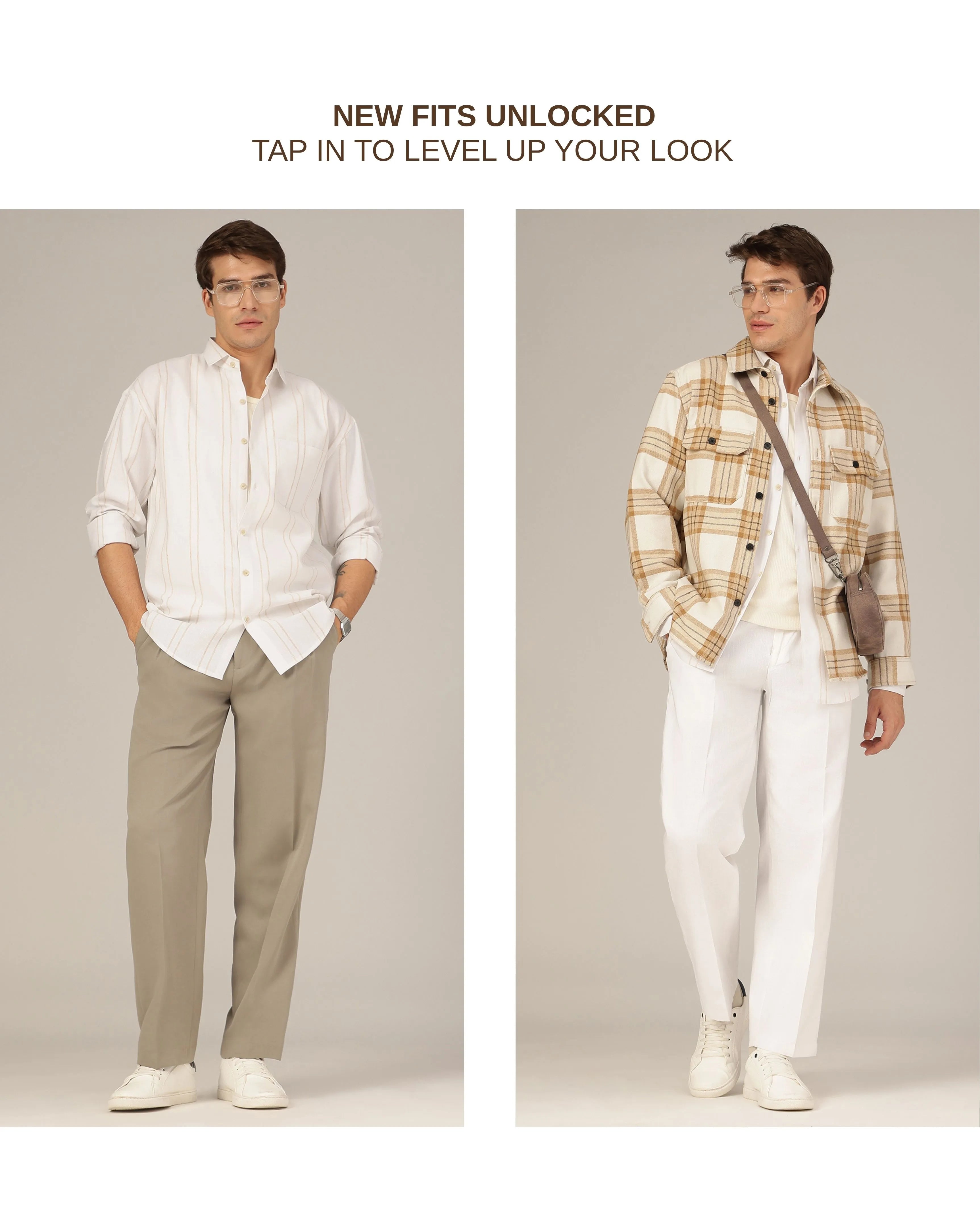 These Baggy Fit Korean Trousers are made from durable polyester, featuring a stylish double pleated front, four functional pockets, and a secure button closure—designed for all-day comfort and trend-forward versatility.