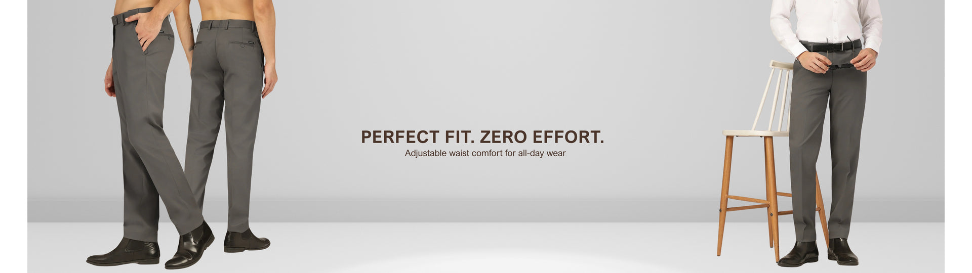 Steel Grey: Flexi Waist Relaxed Fit Casual Trouser