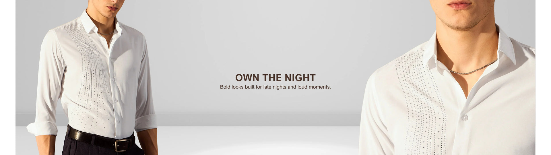 Stand out at any party by pairing this embellished polycotton shirt with tailored black trousers or chinos. Complete the look with polished leather shoes and a sleek belt. Add a wristwatch for an extra touch of sophistication.