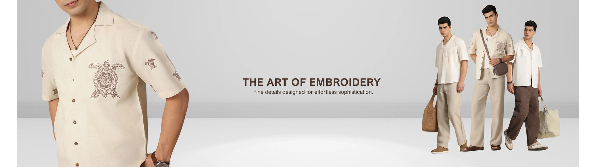 The embroidered oversized fit with drop-shoulder and Cuban collar brings an easy, casual vibe, balancing relaxed proportions with subtle detailing for a modern, confident look.
