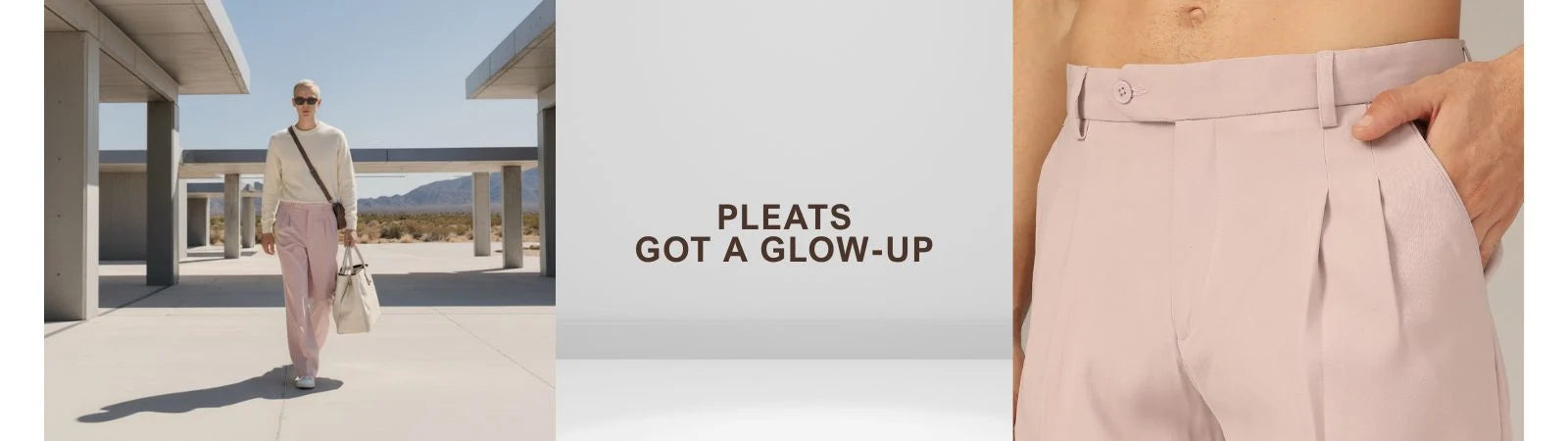 Light Pink: Korean Baggy Fit Double Pleated Casual Trouser