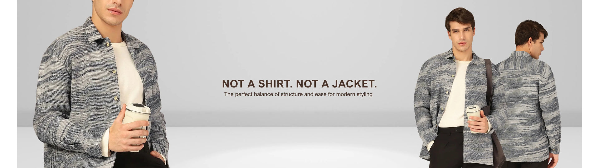Step up your style with this Oversized Fit, Full Sleeves Casual Shacket featuring a Drop-Shoulder, Jacquard Print, 2 welt pockets, spread collar, and crafted in breathable cotton for all-day comfort.
