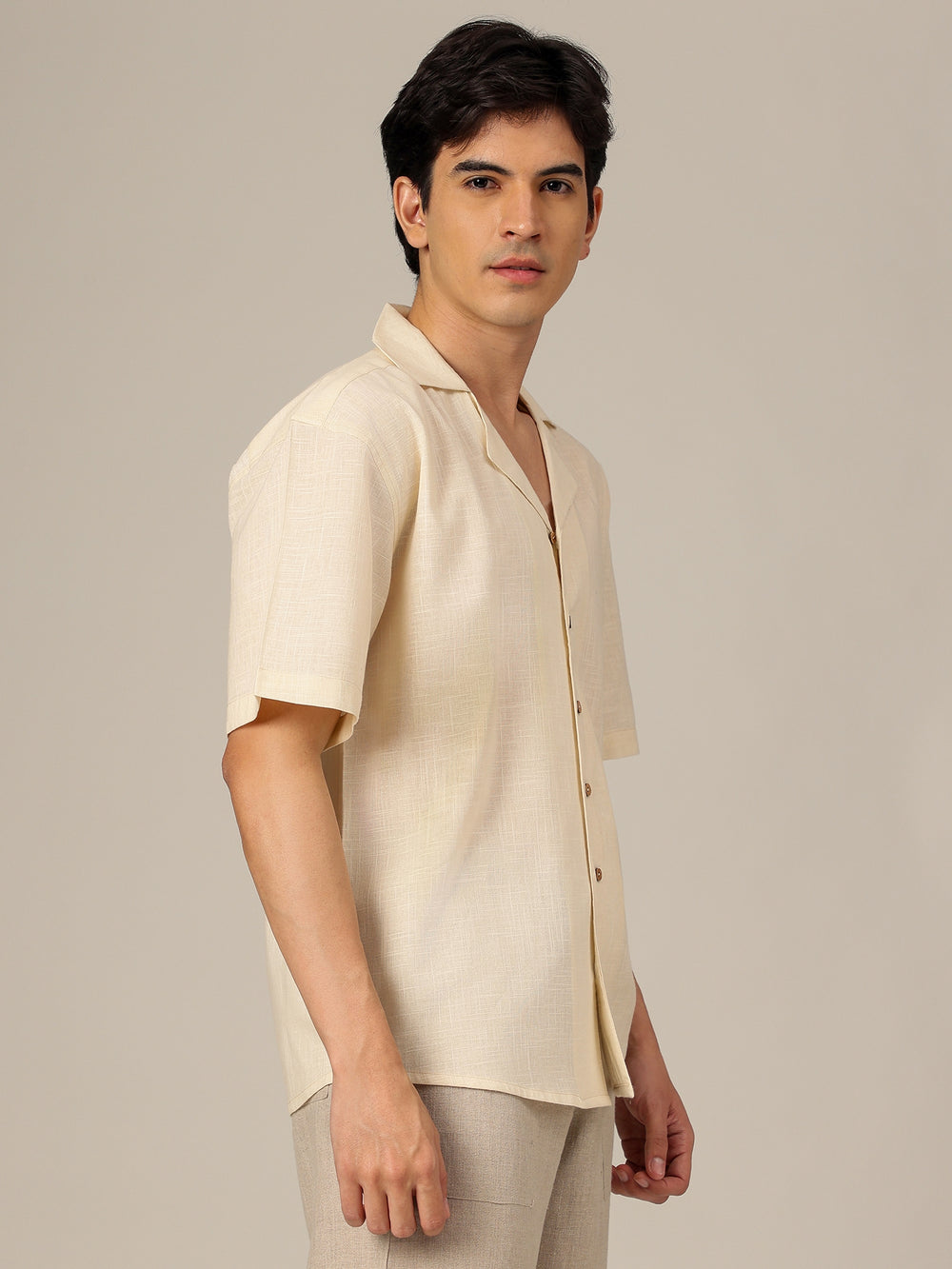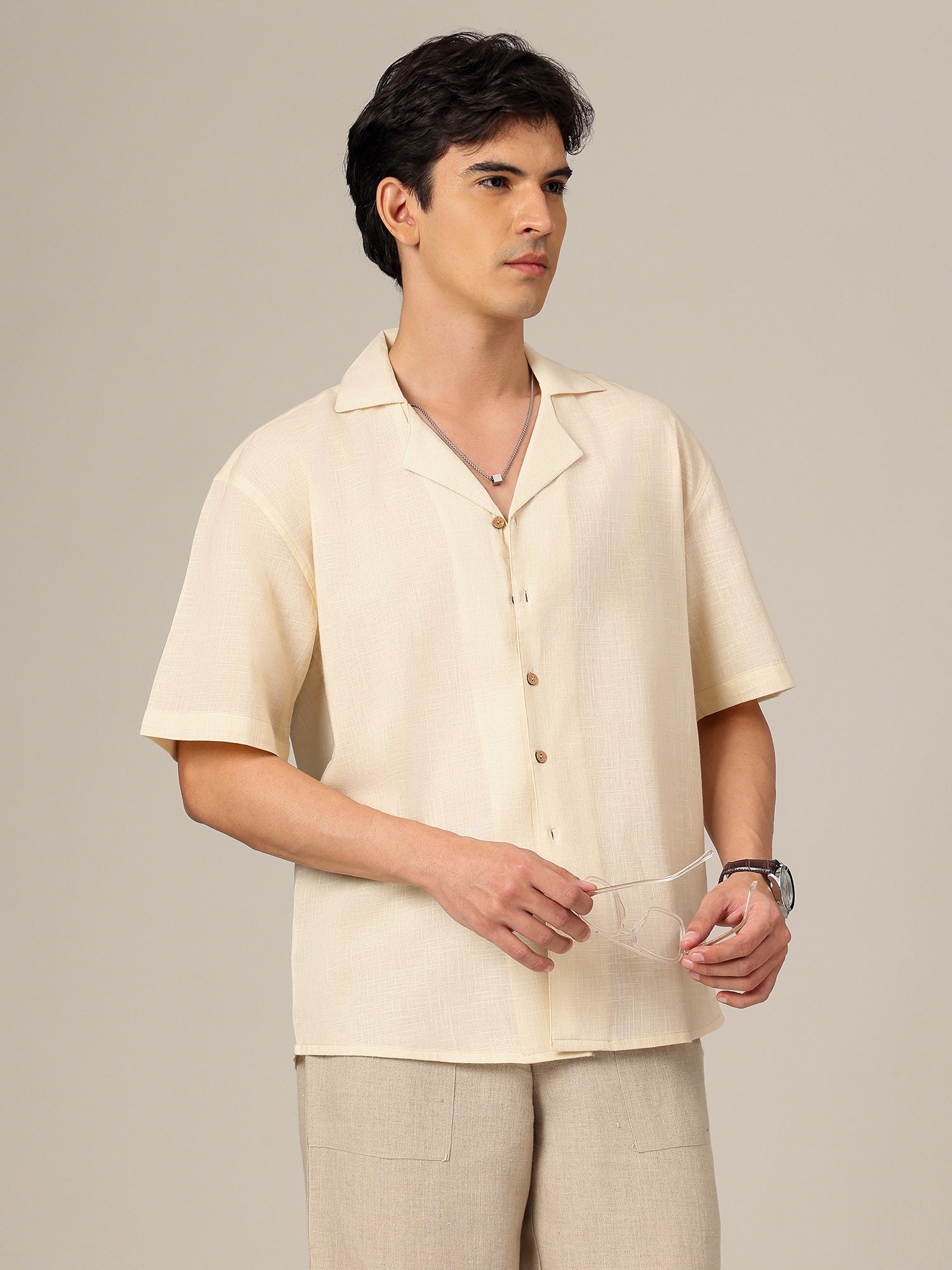 Keep it effortlessly cool with this Back Side Embroidery Oversize Fit Casual Shirt. Made from breathable Cotton, it features Drop-Shoulders, Half Sleeves, a Cuban Collar, and a Curved Hemline for that easy, relaxed vibe.