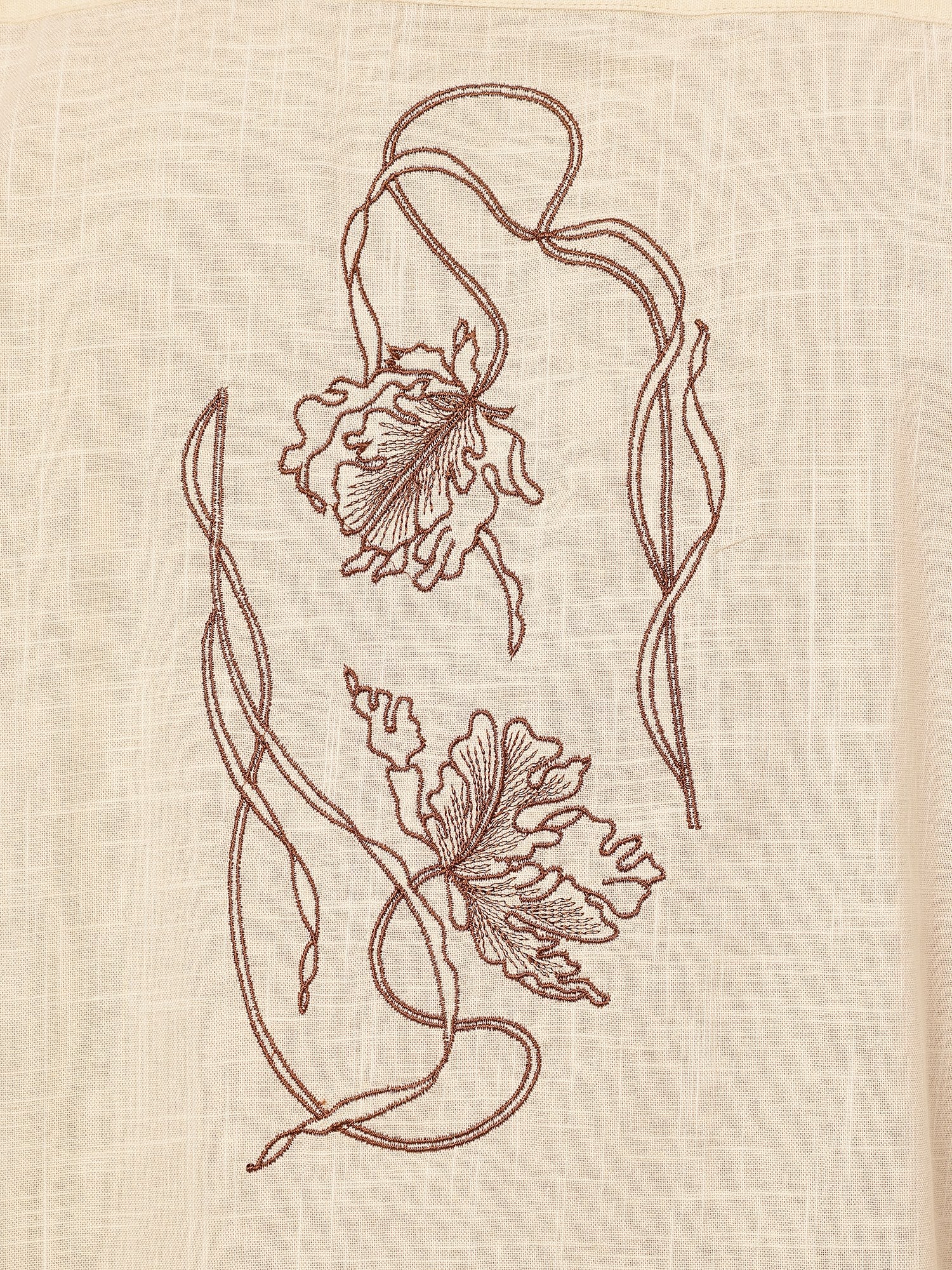 Beige & Brown: Embroidered Drop Shoulder Oversized Shirt