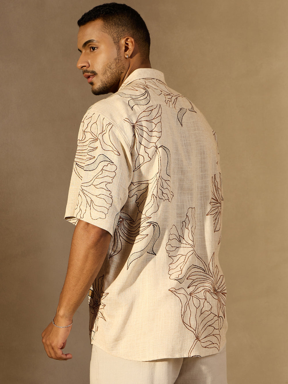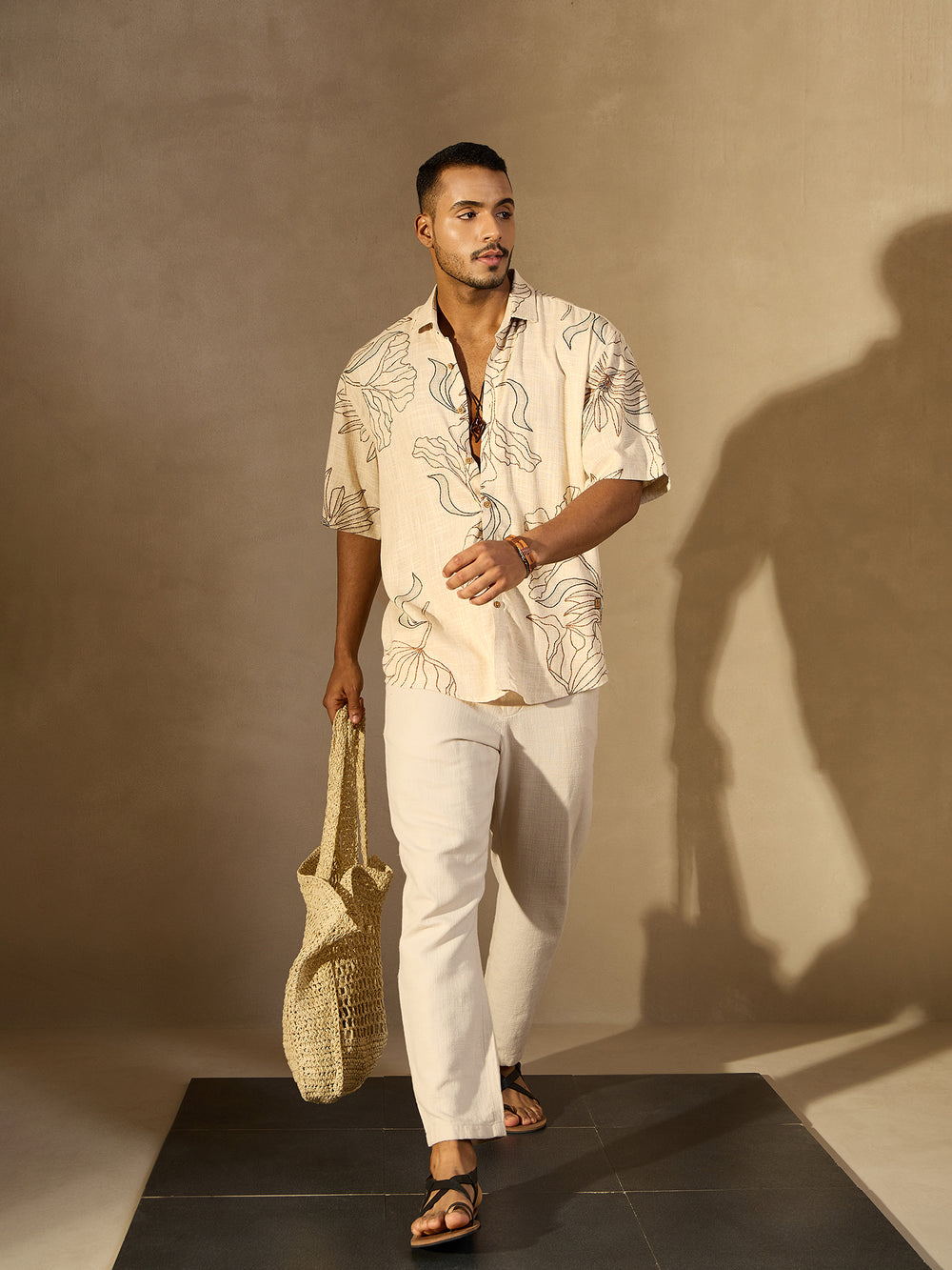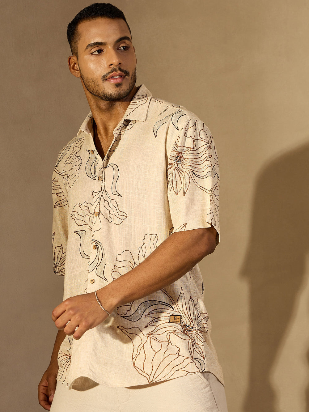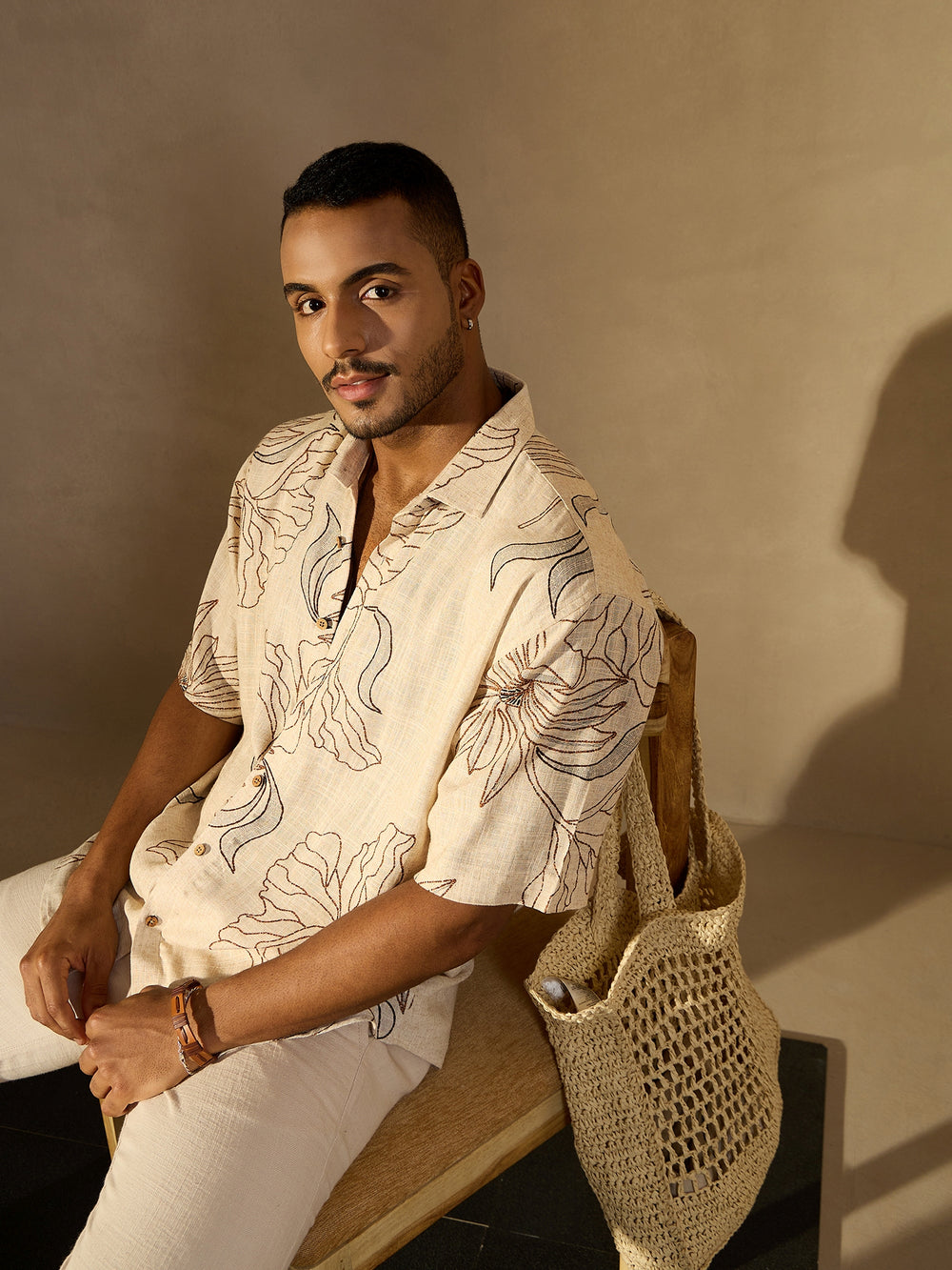 This Floral Printed Drop Shoulder Shirt in linen offers breezy comfort and stylish flair. Featuring an oversized fit with short sleeves and a spread collar, it showcases a vibrant floral print, perfect for adding a touch of summer and winter charm to casual outings or relaxed gatherings.