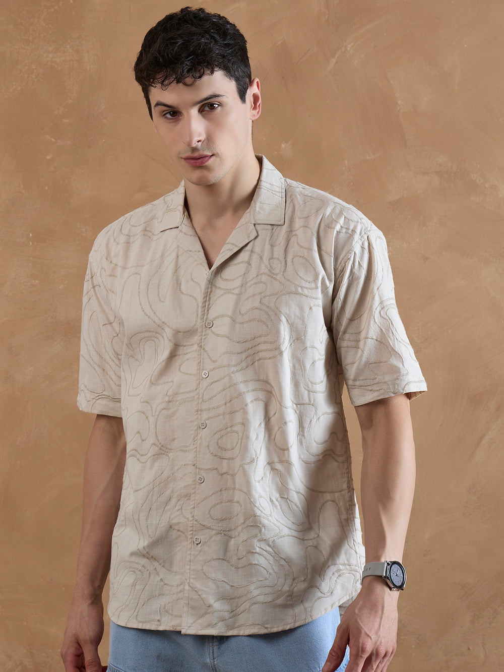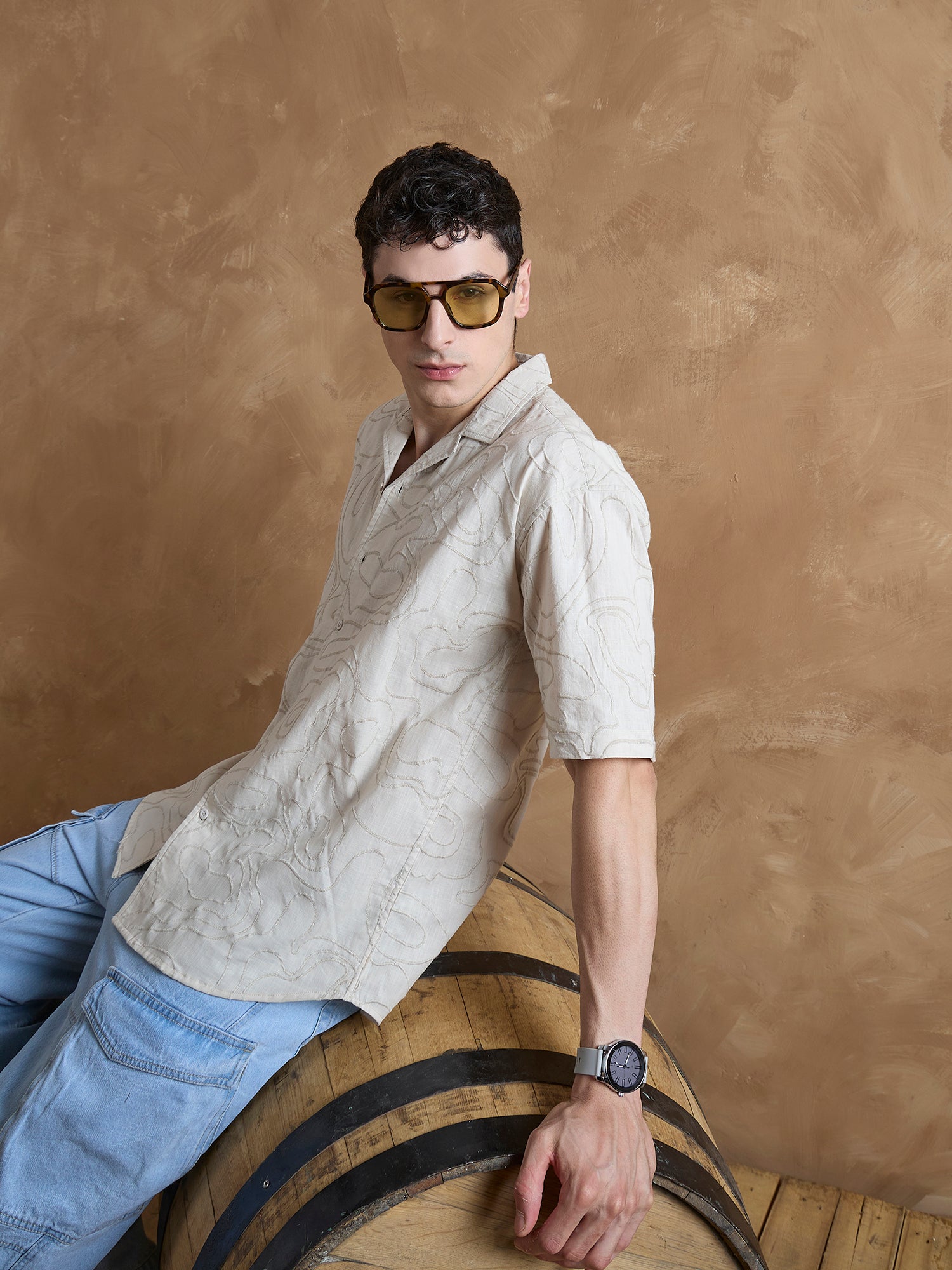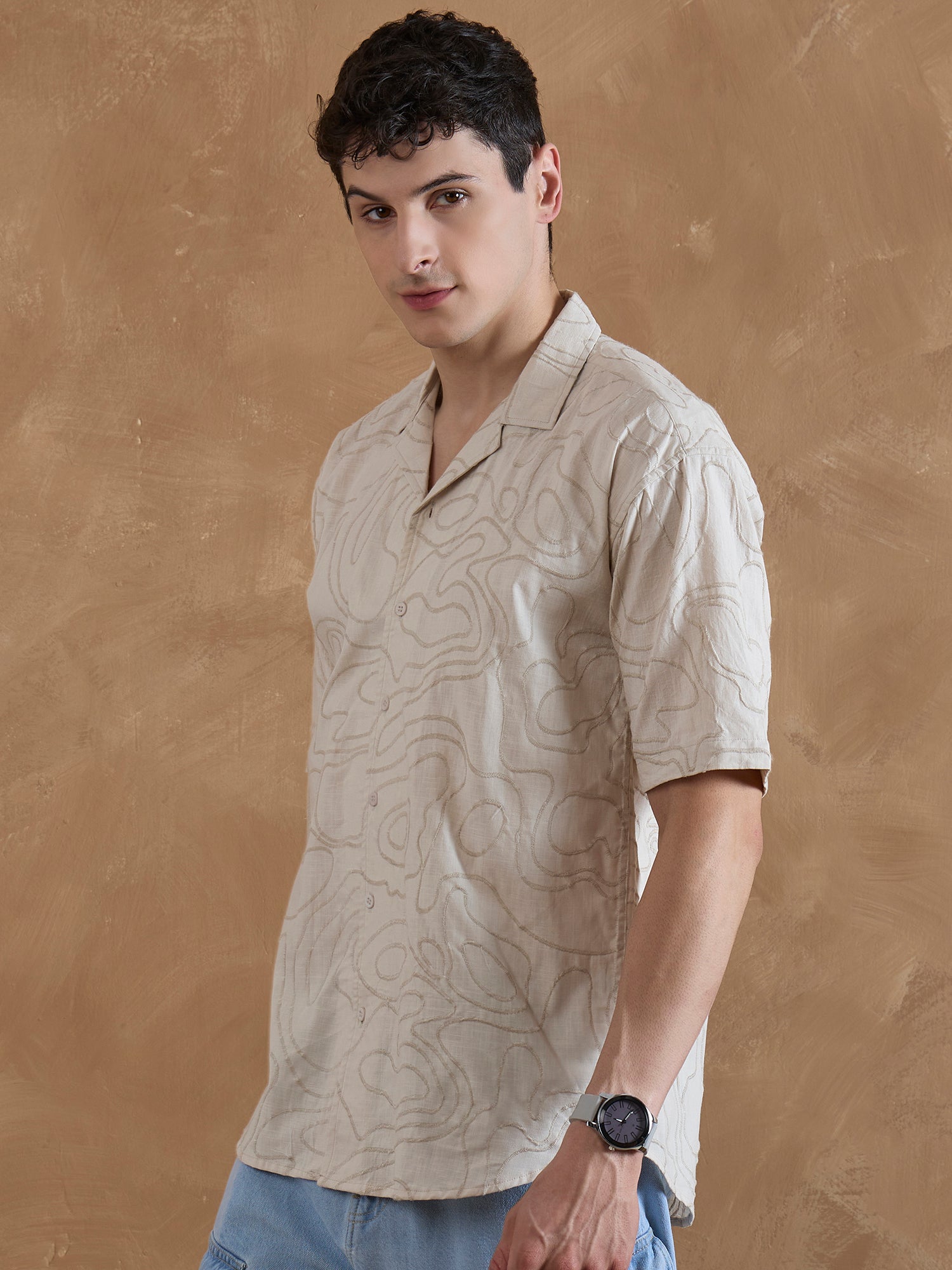 Elevate your casual style with this cotton embroidered shirt from Dennison. Featuring delicate embroidery, a relaxed Cuban collar, and drop shoulders, it blends craftsmanship with modern design. The oversized silhouette and curved hem make it an easy statement piece for those who appreciate subtle detail and breezy comfort.