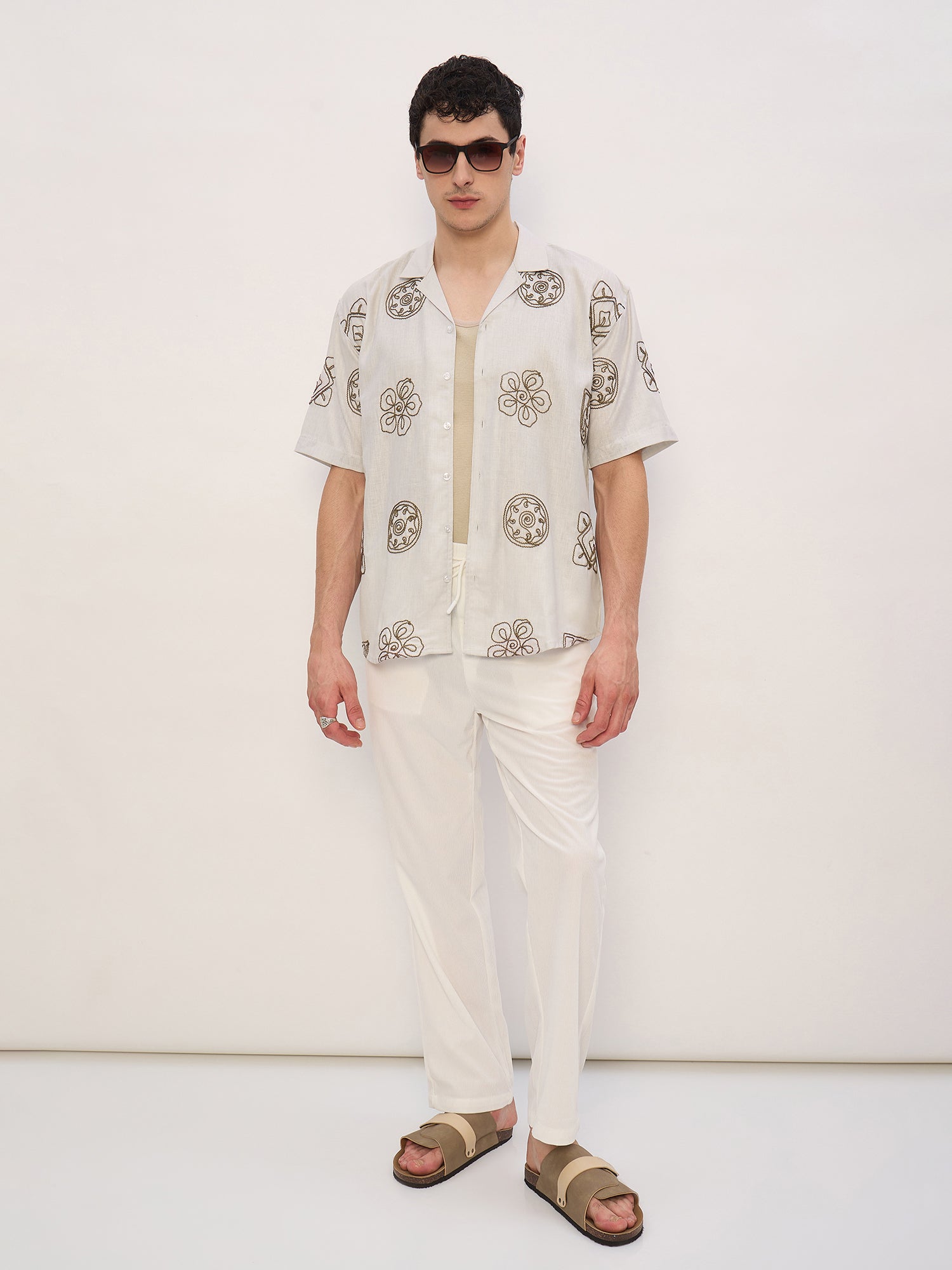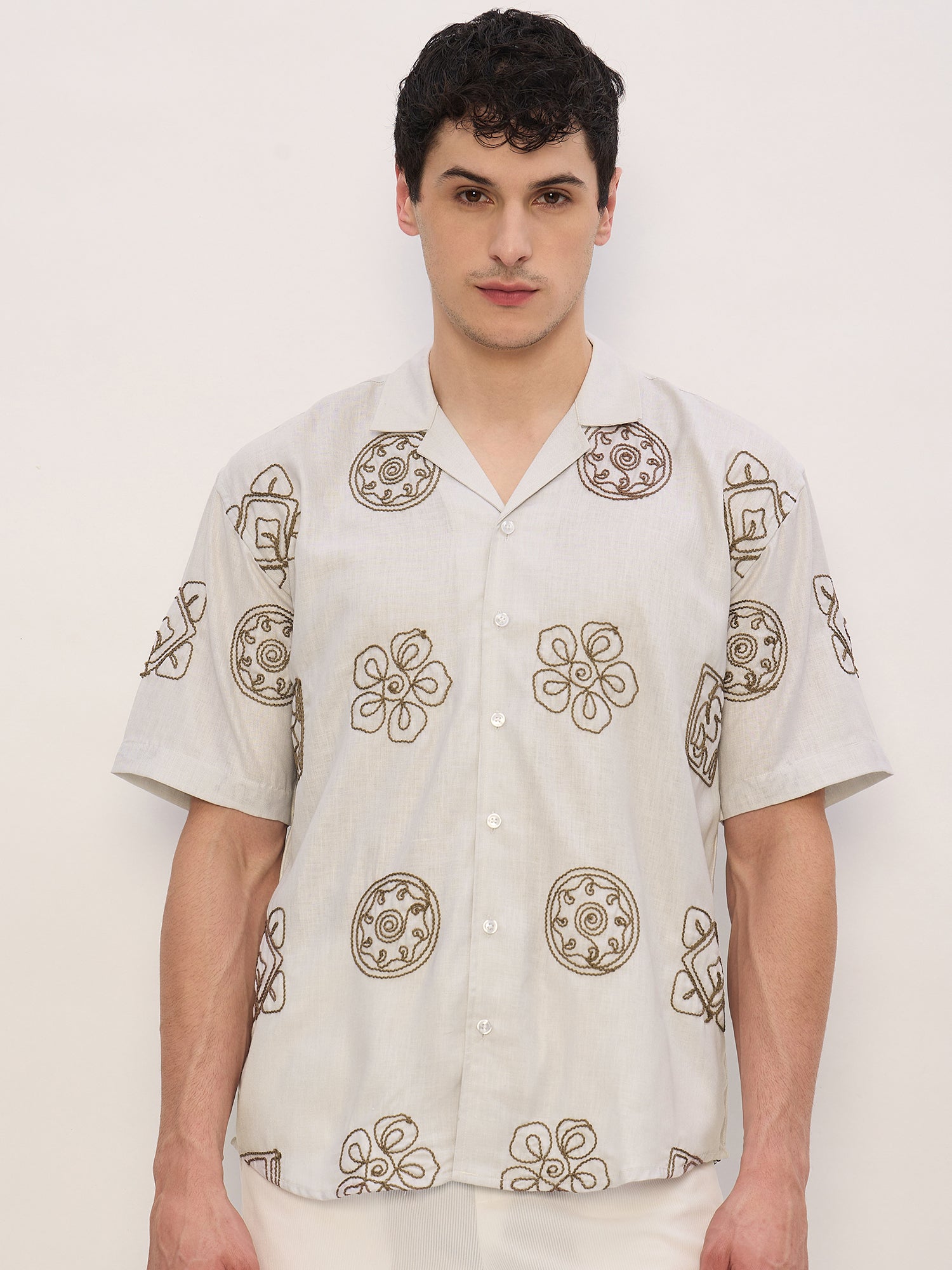 Elevate your casual style with this cotton embroidered shirt from Dennison. Featuring delicate embroidery, a relaxed Cuban collar, and drop shoulders, it blends craftsmanship with modern design. The oversized silhouette and curved hem make it an easy statement piece for those who appreciate subtle detail and breezy comfort.