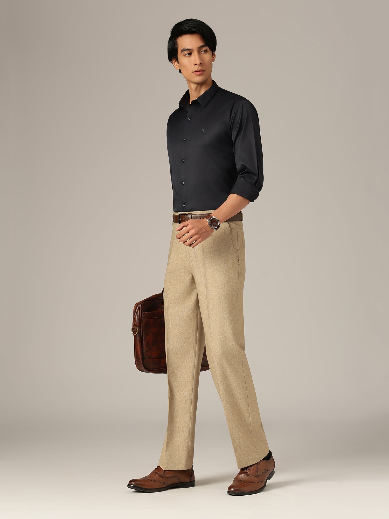 Casual baggy fit trouser made from durable polyester, featuring a clean solid design. Flat-front construction, four functional pockets, and a secure button & zip closure deliver relaxed comfort with everyday versatility.