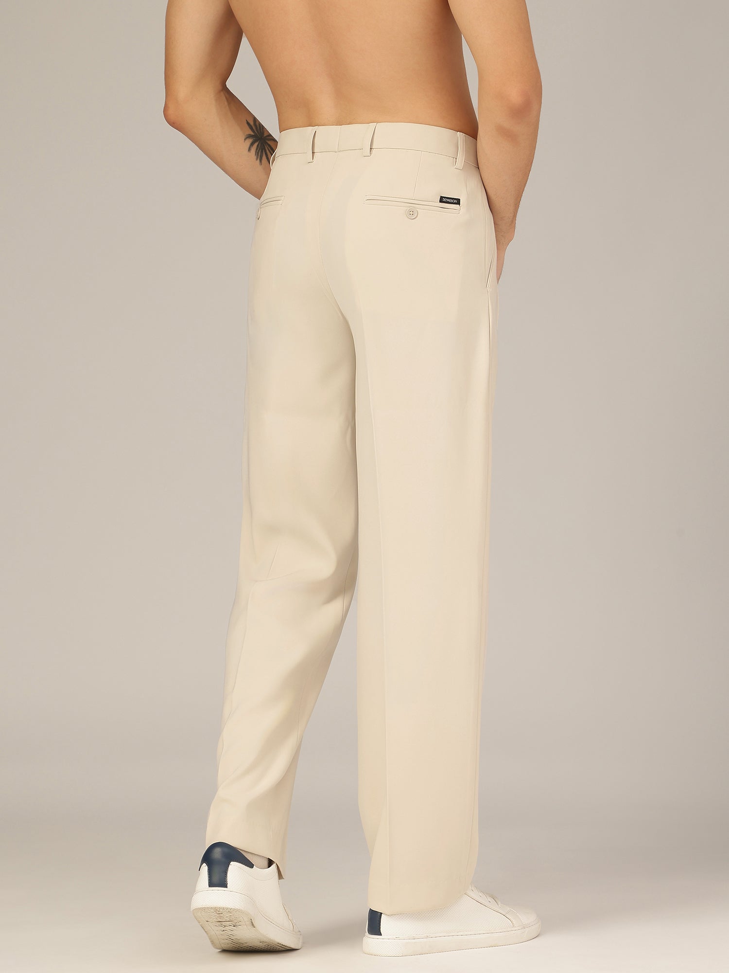 Beige: Korean Baggy Fit Double Pleated Casual Trouser