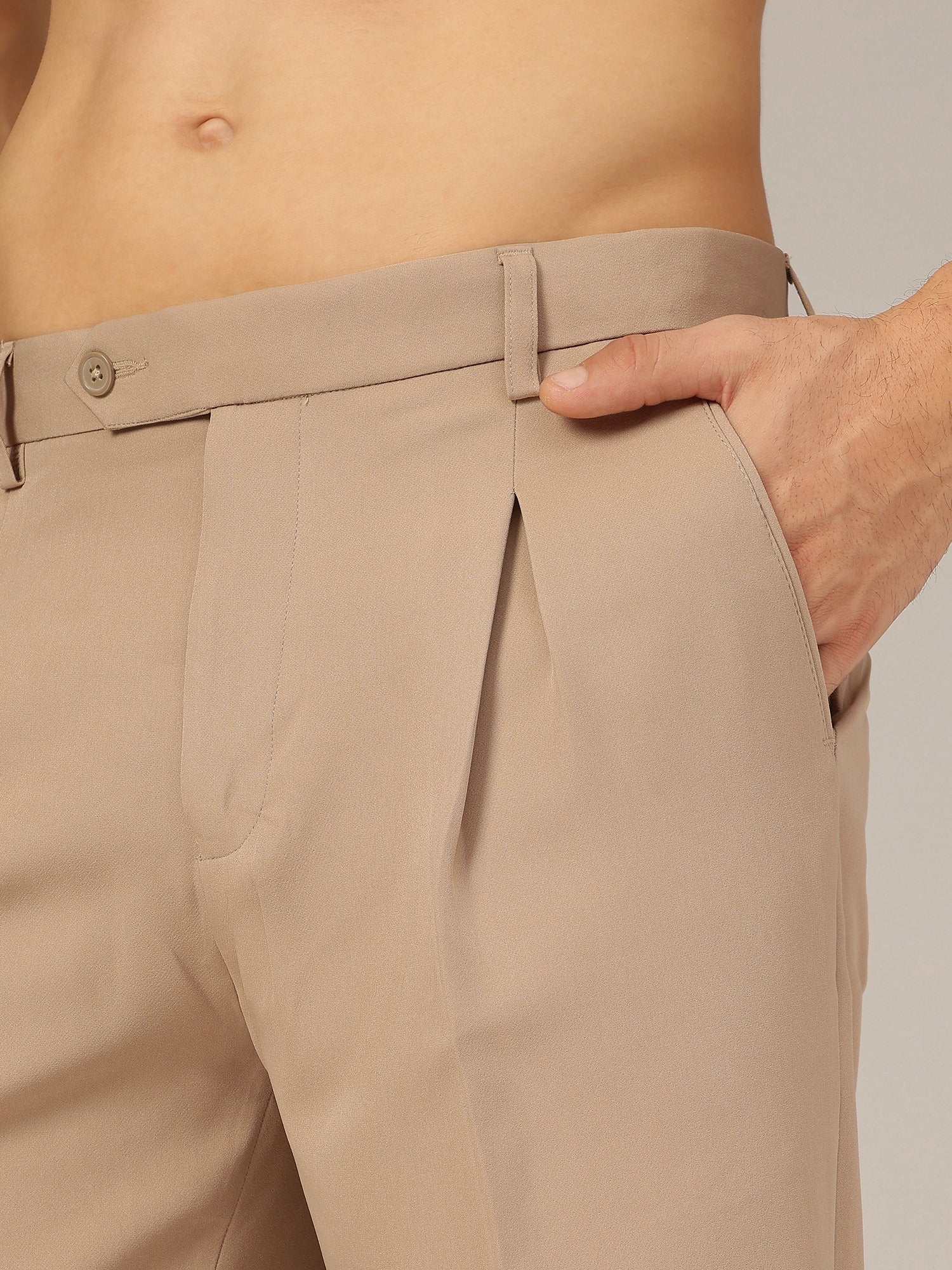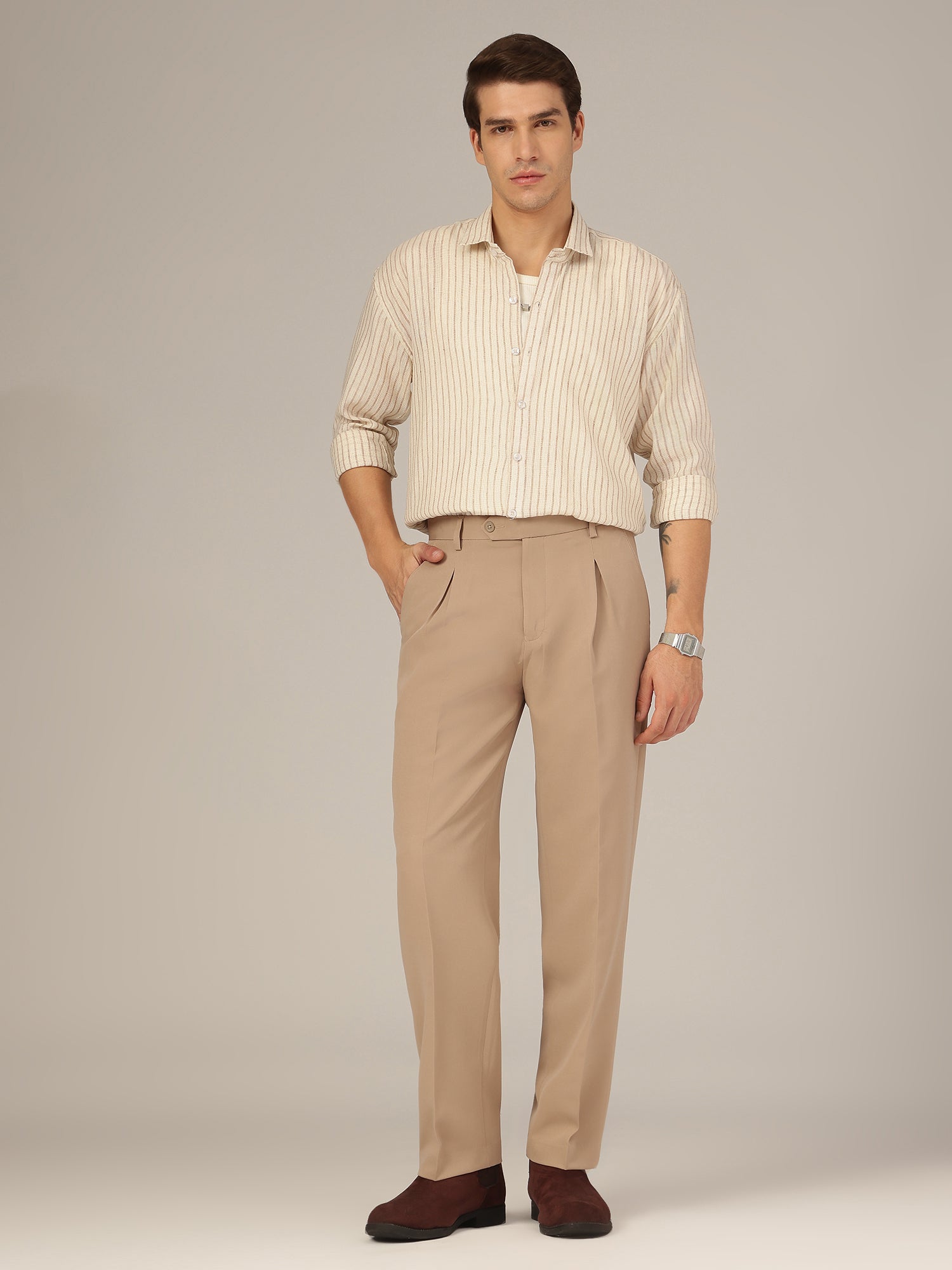Beige: Korean Baggy Fit inverted Pleated Casual Trouser