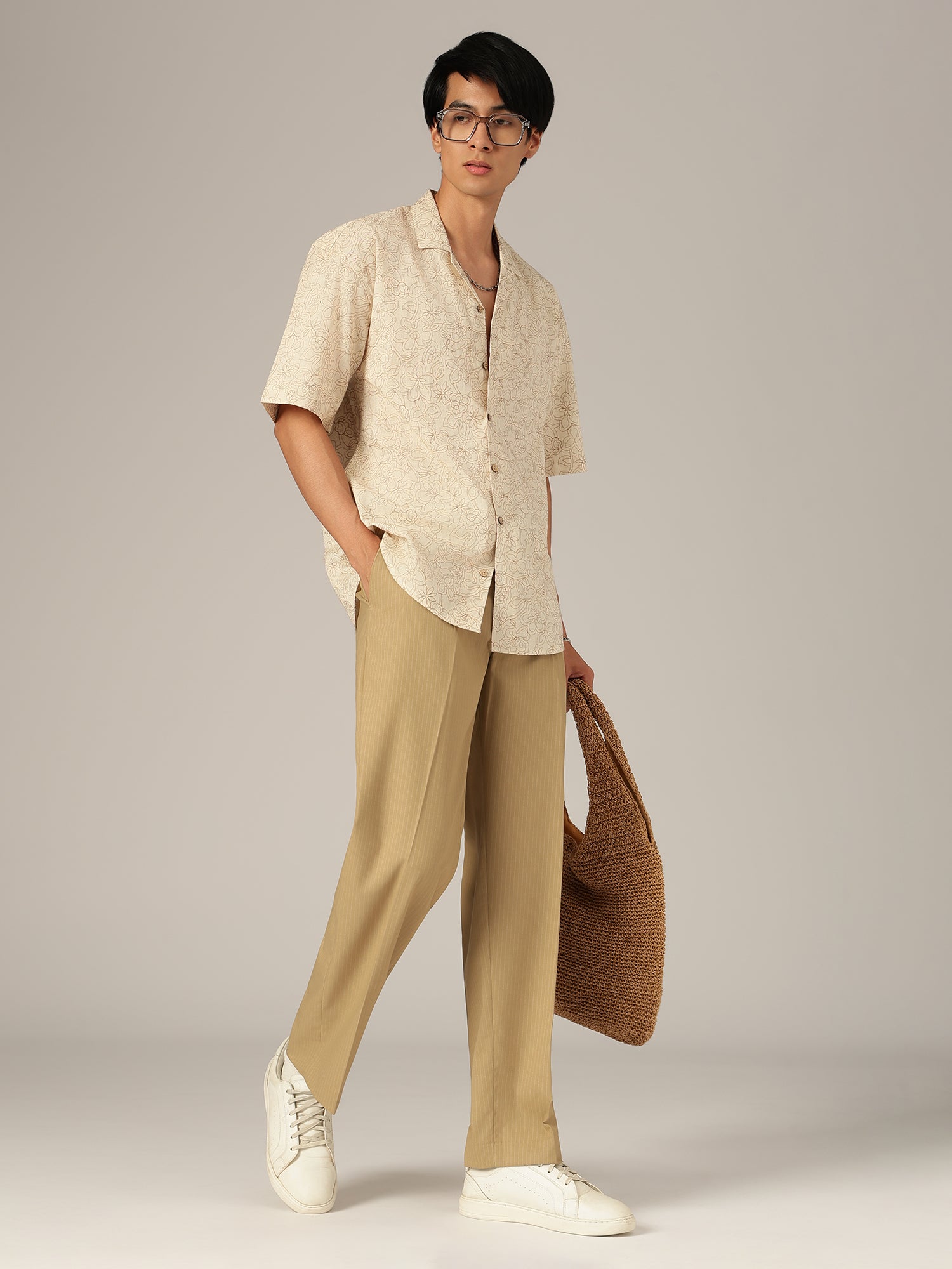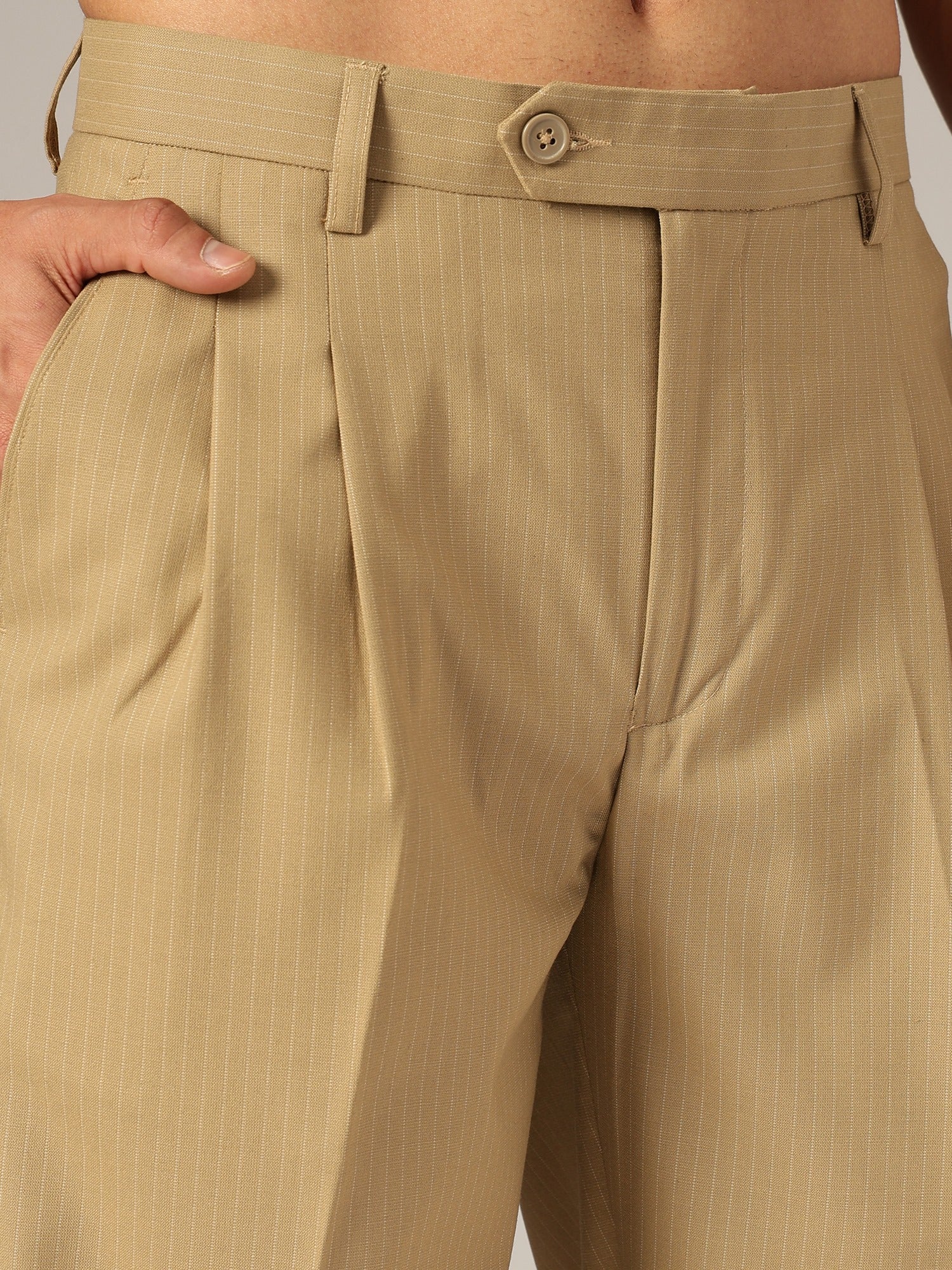 Modern Korean Trouser featuring a baggy fit with striped design, crafted in durable polyester. Double pleated structure adds shape, while button & zip closure and four pockets balance comfort with casual street-ready style.
