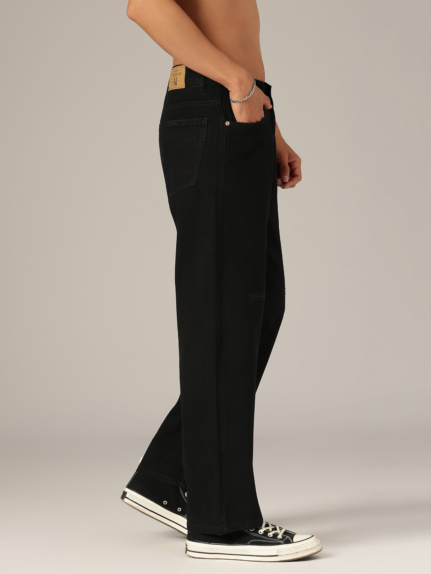 Designed for a street-ready look, these dark shade baggy fit jeans with low distress detailing offer a bold yet effortless vibe that balances comfort, structure, and modern attitude.