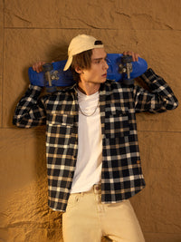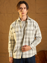 A cozy, versatile oversized Checked shacket crafted from soft cotton with a double-pocket design and dropped shoulders for a relaxed fit. The full sleeves and timeless check pattern add casual-chic appeal, perfect for layering any season.