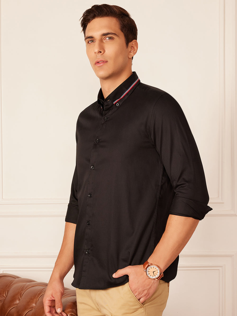 Black: Full Sleeves Tape On Collar Formal Shirt