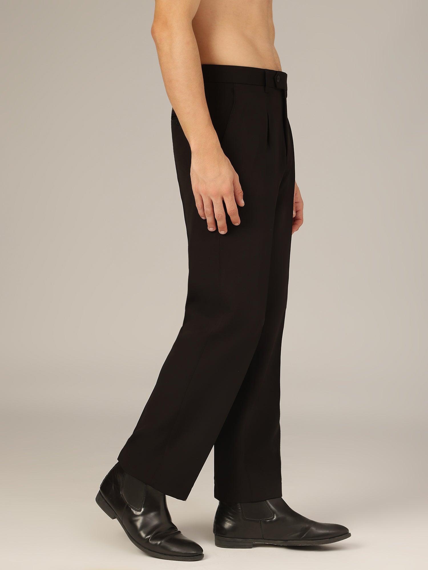 Black: Korean Baggy Fit inverted Pleated Casual Trouser