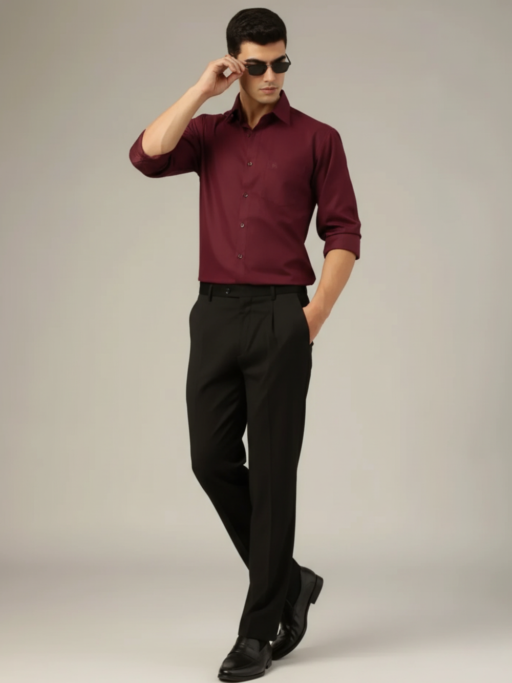 This regular fit formal shirt is crafted from breathable polycotton fabric, featuring full sleeves, a sharp spread collar, one patch pocket, and an embroidered brand logo for a refined finish.