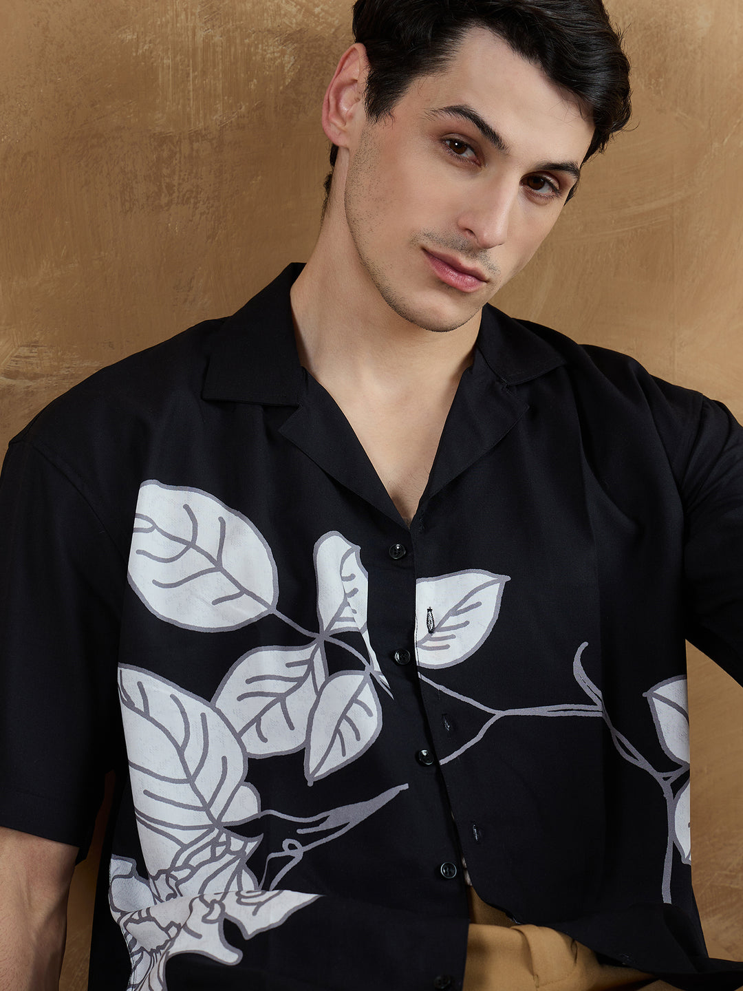 The oversized silhouette and striking floral placement print bring a modern, relaxed vibe. Its soft viscose rayon fabric and Cuban collar offer comfort and style for any laid-back day.