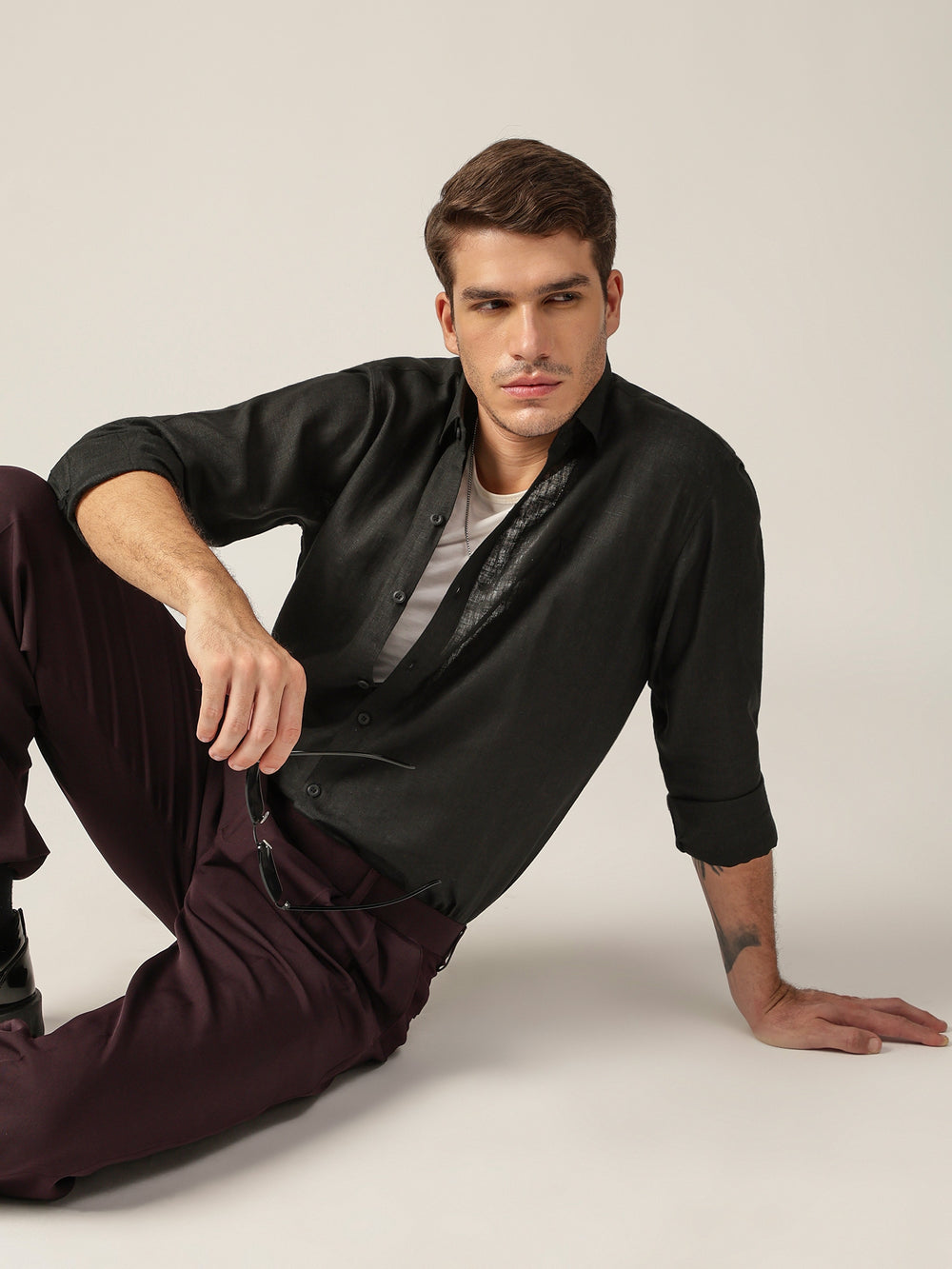 This Relaxed Fit Casual Shirt is crafted from 100% Linen for breathable comfort. Featuring a Solid design, No Pocket, Full Sleeves, Spread Collar, Curved Hemline, and an Embroidered Brand Logo. Sustainable choice for everyday wear.