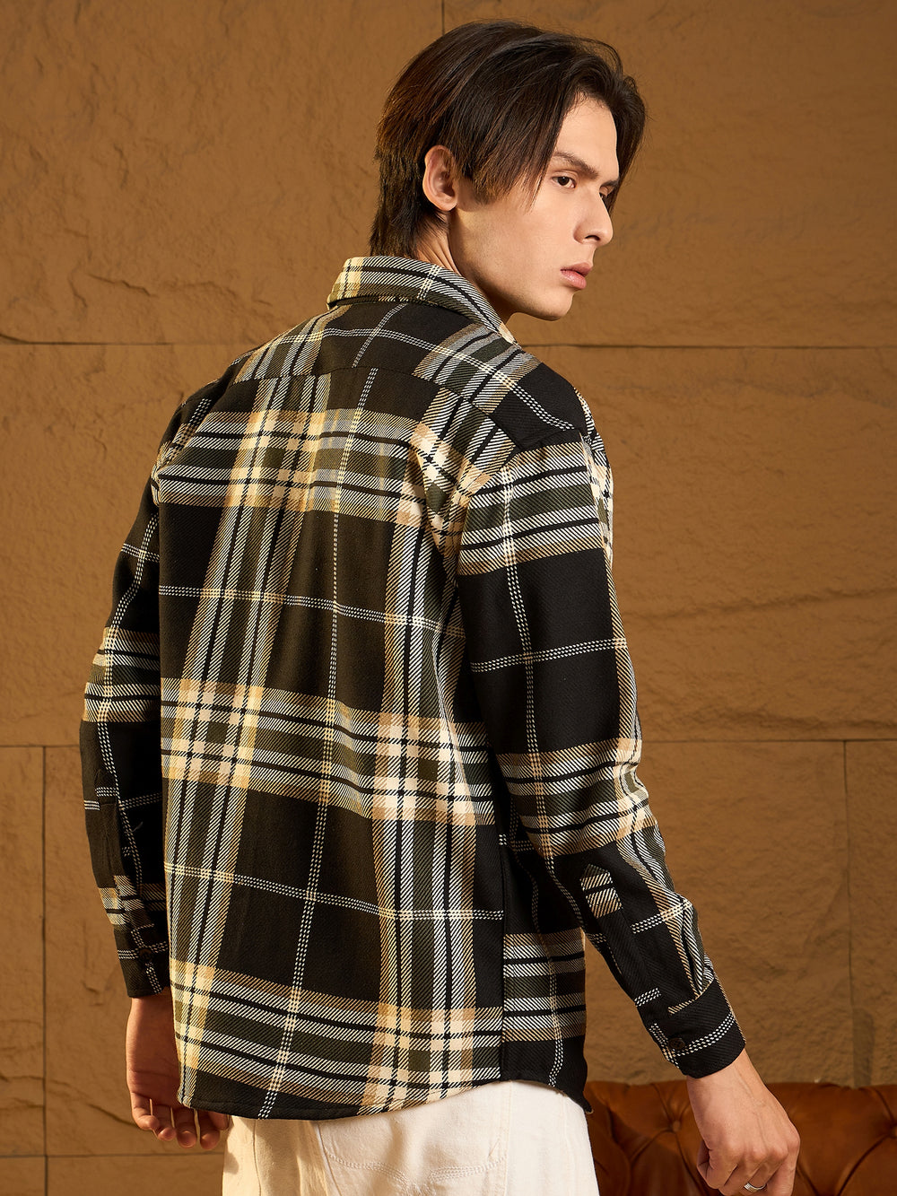 A cozy, versatile oversized Checked shacket crafted from soft cotton with a double-pocket design and dropped shoulders for a relaxed fit. The full sleeves and timeless check pattern add casual-chic appeal, perfect for layering any season.