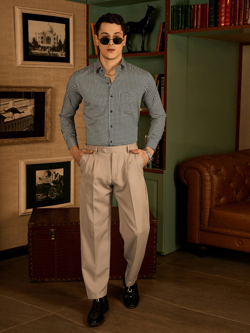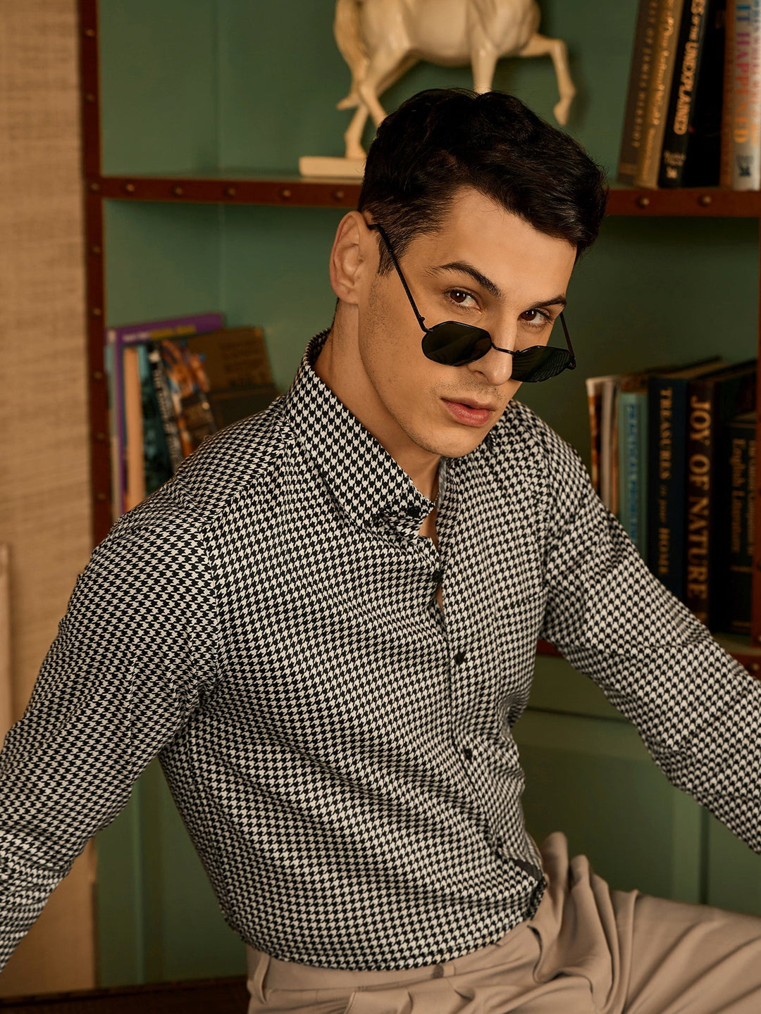Black & White Houndstooth printed Formal shirt ,has a spread collar, button placket, 1 Patch pocket, long regular sleeves, curved hem