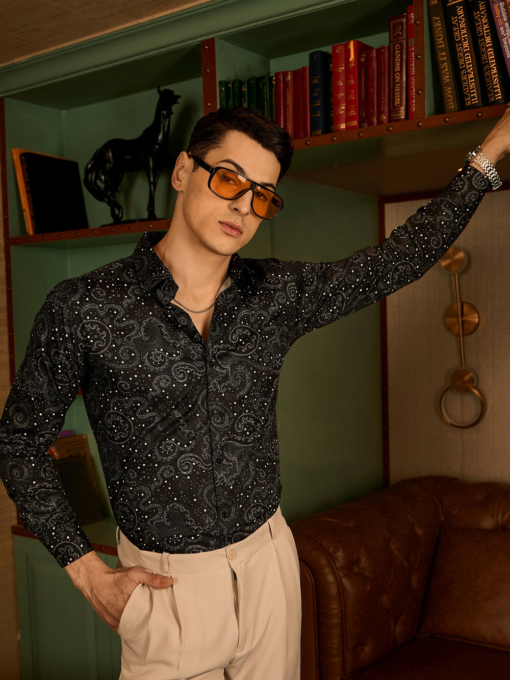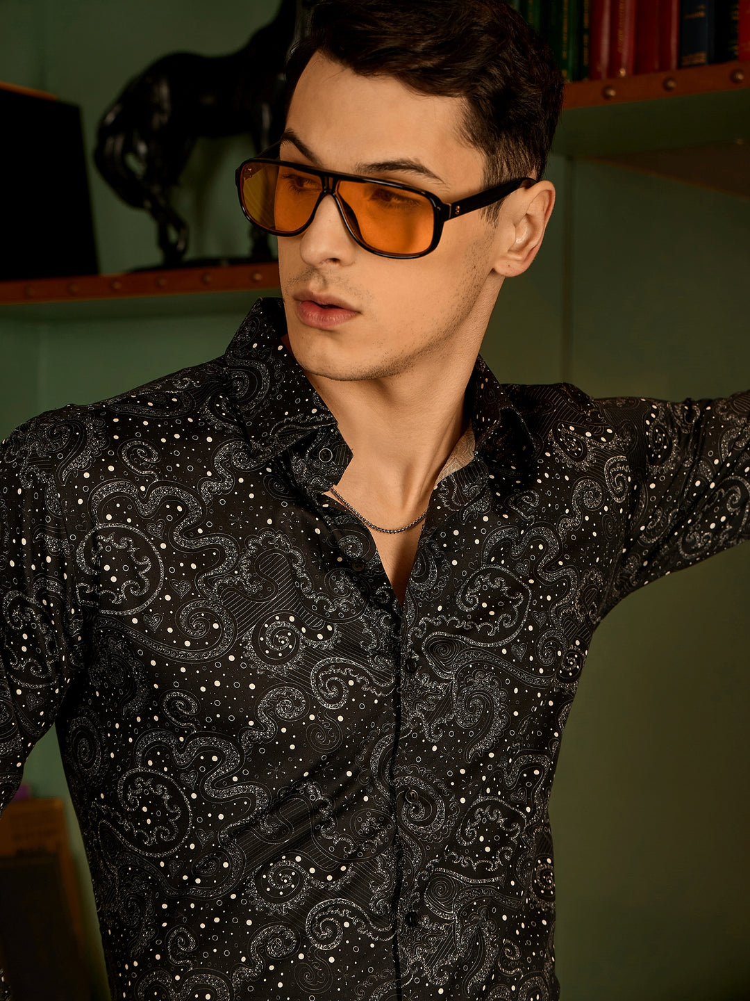 Black & White paisley printed Casual shirt ,has a spread collar, button placket, no pocket, long regular sleeves, curved hem