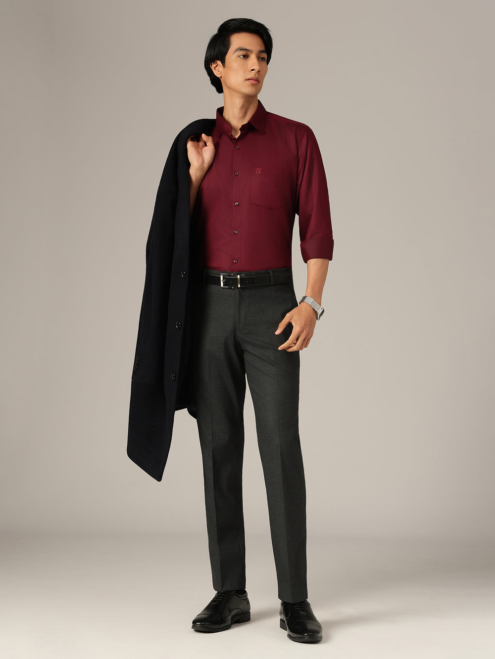 Formal Korean Trouser tailored in polyester, featuring a baggy fit with refined checkered pattern. Flat-front design, flexi waist comfort, four functional pockets, and a secure button & zip closure create a modern yet polished look.