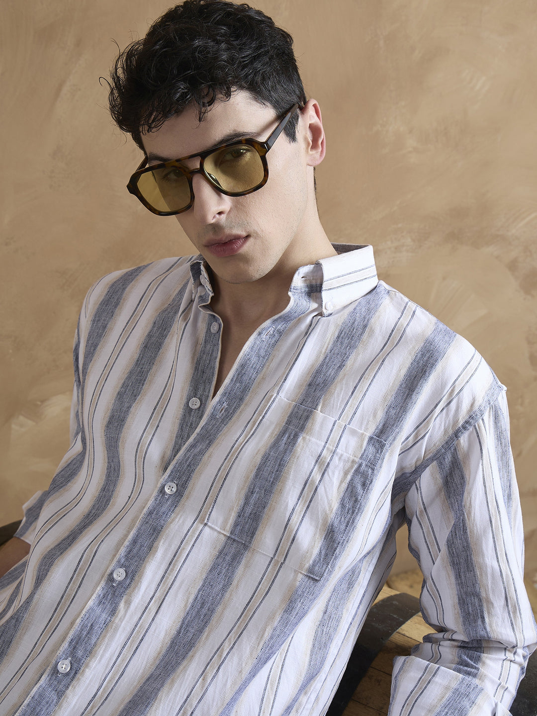 Blue & Cream: Full Sleeves Vertical Stripes Shirt