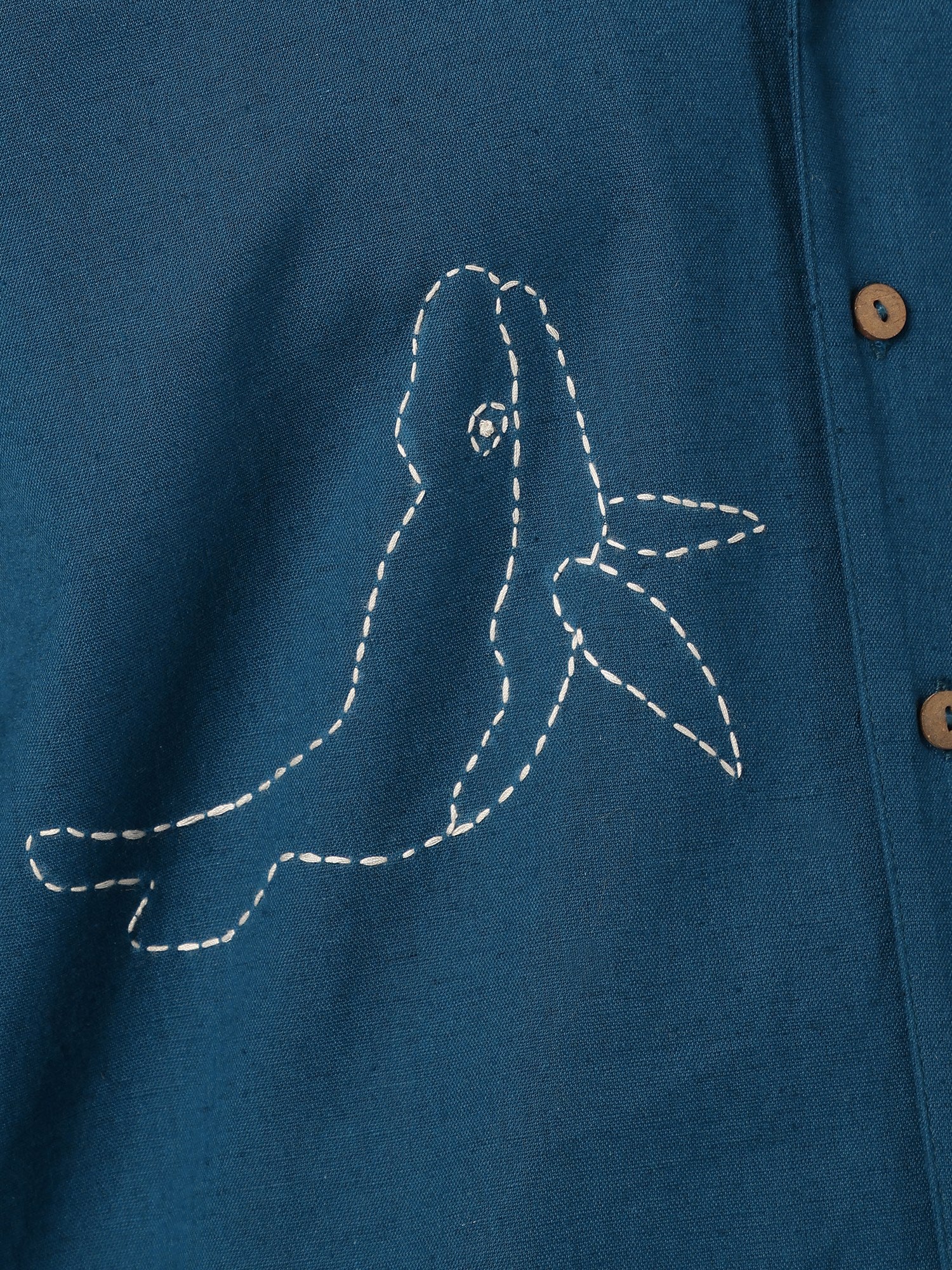 Blue: Embroidered Drop Shoulder Oversized Shirt