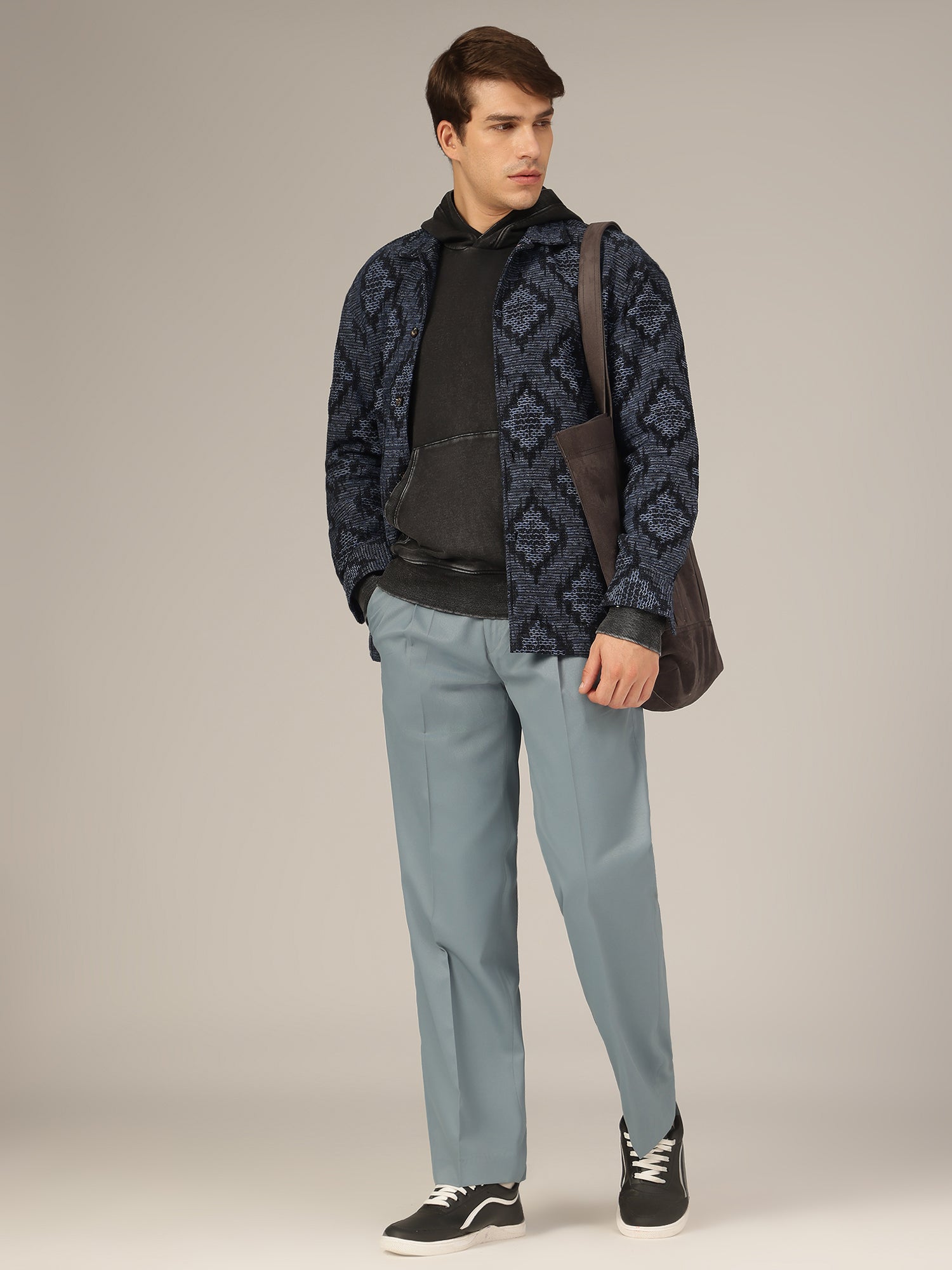 These Baggy Fit Korean Trousers are made from textured polyester, featuring a double pleated front, four functional pockets, and a button closure—offering effortless style and comfort for a casual, modern look.