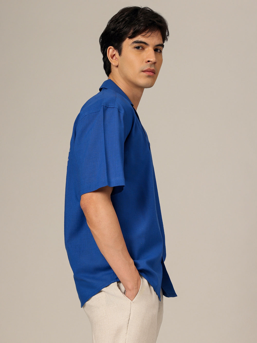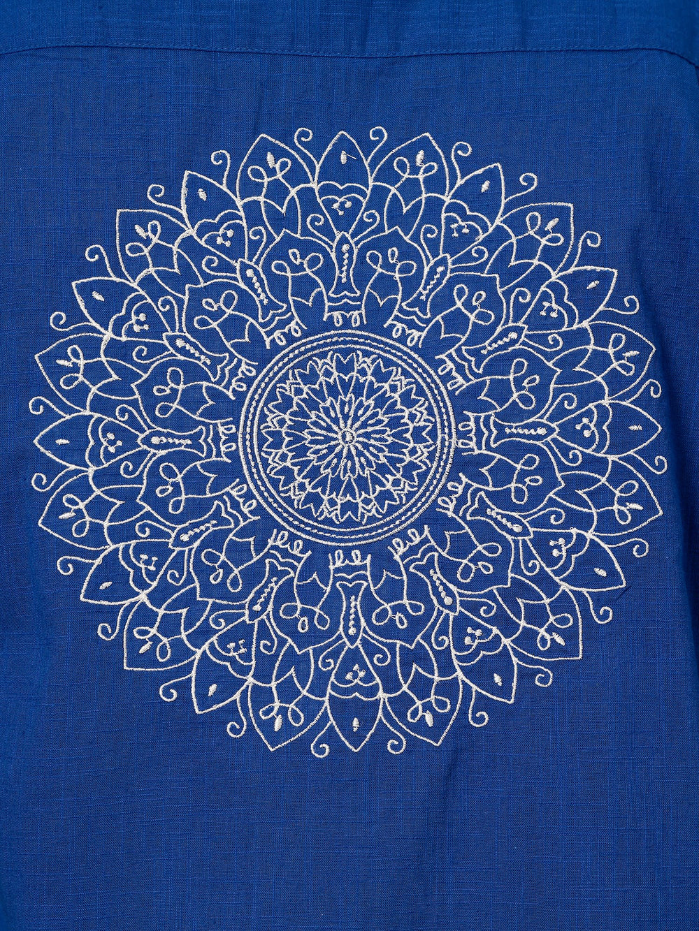 Keep it effortlessly cool with this Back Side Embroidery Oversize Fit Casual Shirt. Made from breathable Cotton, it features Drop-Shoulders, Half Sleeves, a Cuban Collar, and a Curved Hemline for that easy, relaxed vibe.