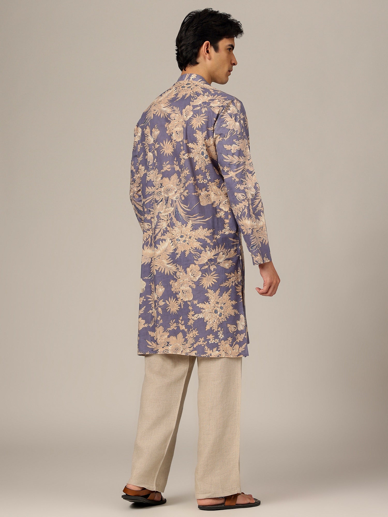 This Floral Printed Kurta blends timeless elegance with modern ease. The Mandarin collar and straight fit give it a refined yet relaxed look, perfect for versatile styling.