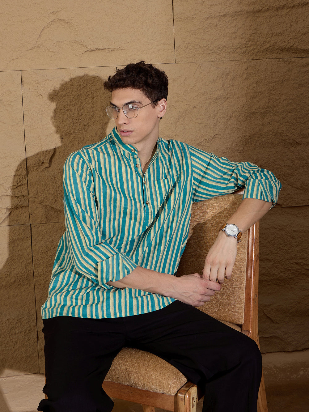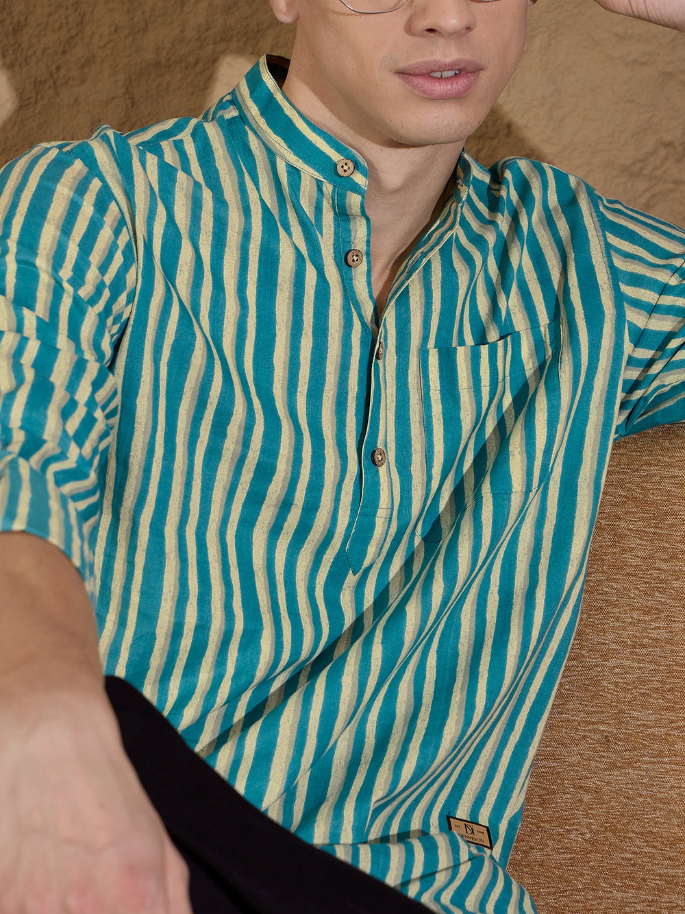 Pair this short cotton kurta with slim-fit jeans or chinos for a relaxed, casual look. Add loafers or sneakers to complete the effortlessly stylish outfit.