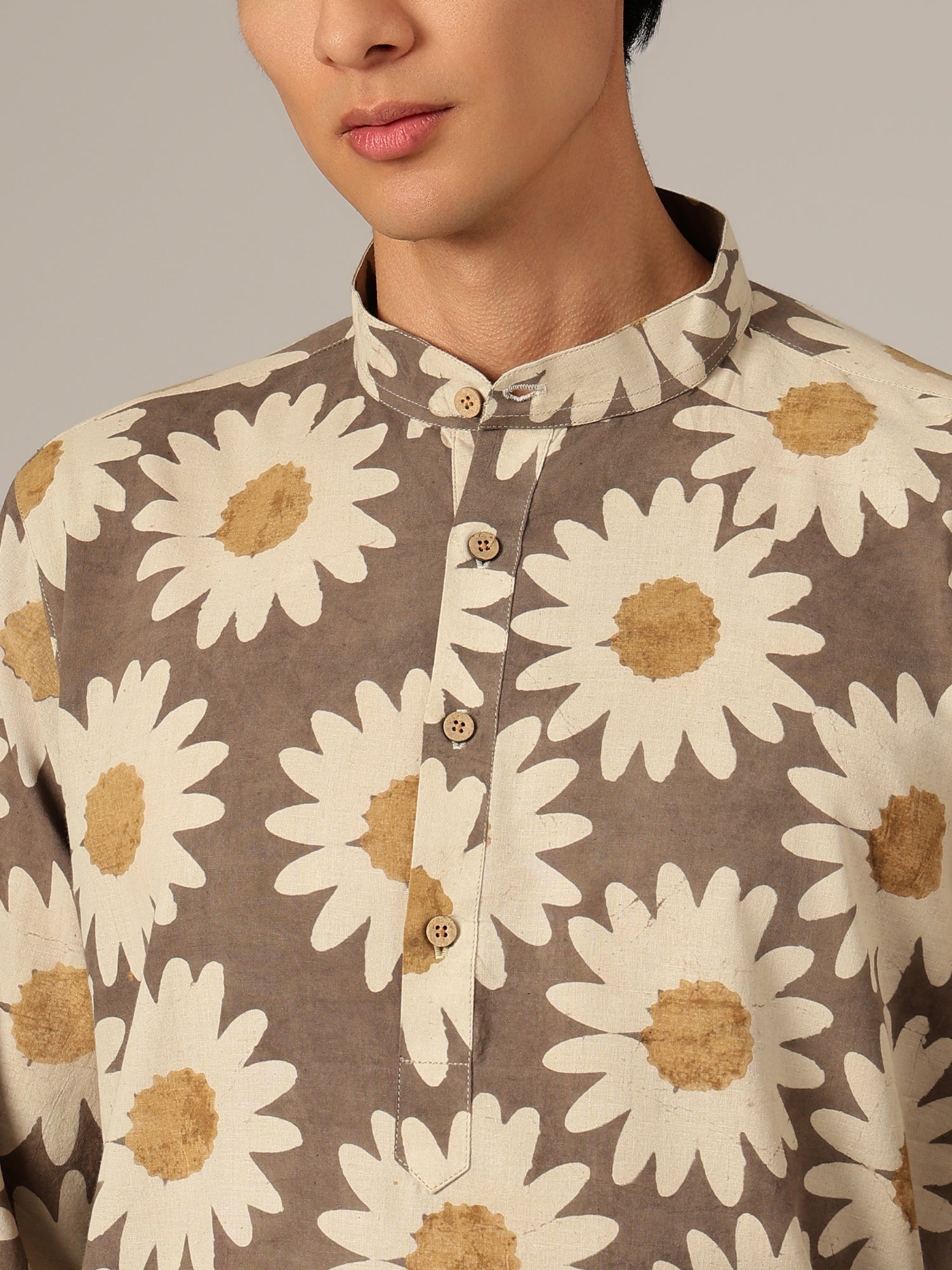 Earthy floral block prints paired with a clean silhouette create a balanced look that feels traditional yet contemporary, perfect for refined everyday wear.