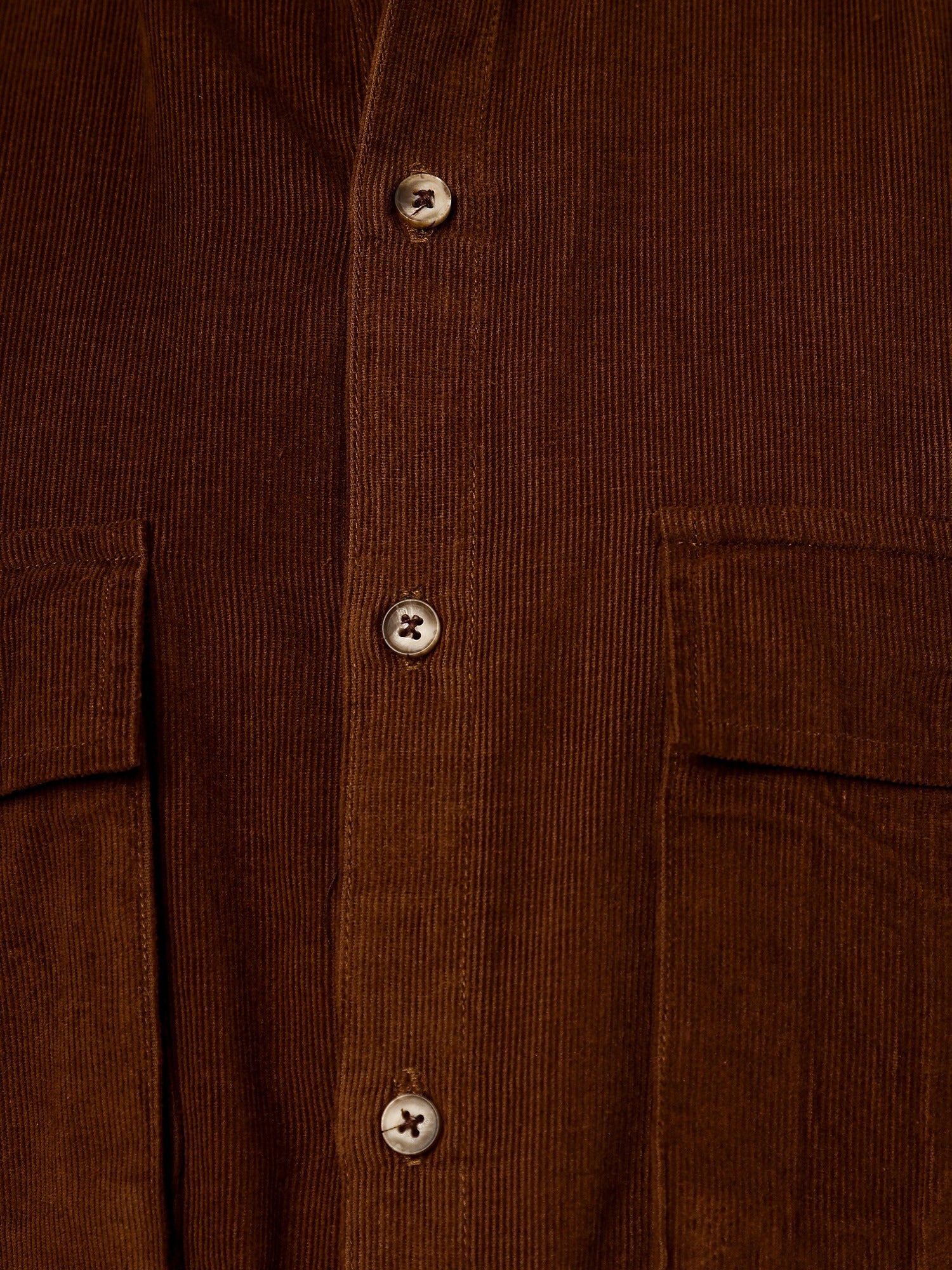 Brown: Textured Oversized Drop-Shoulder Corduroy Shirt