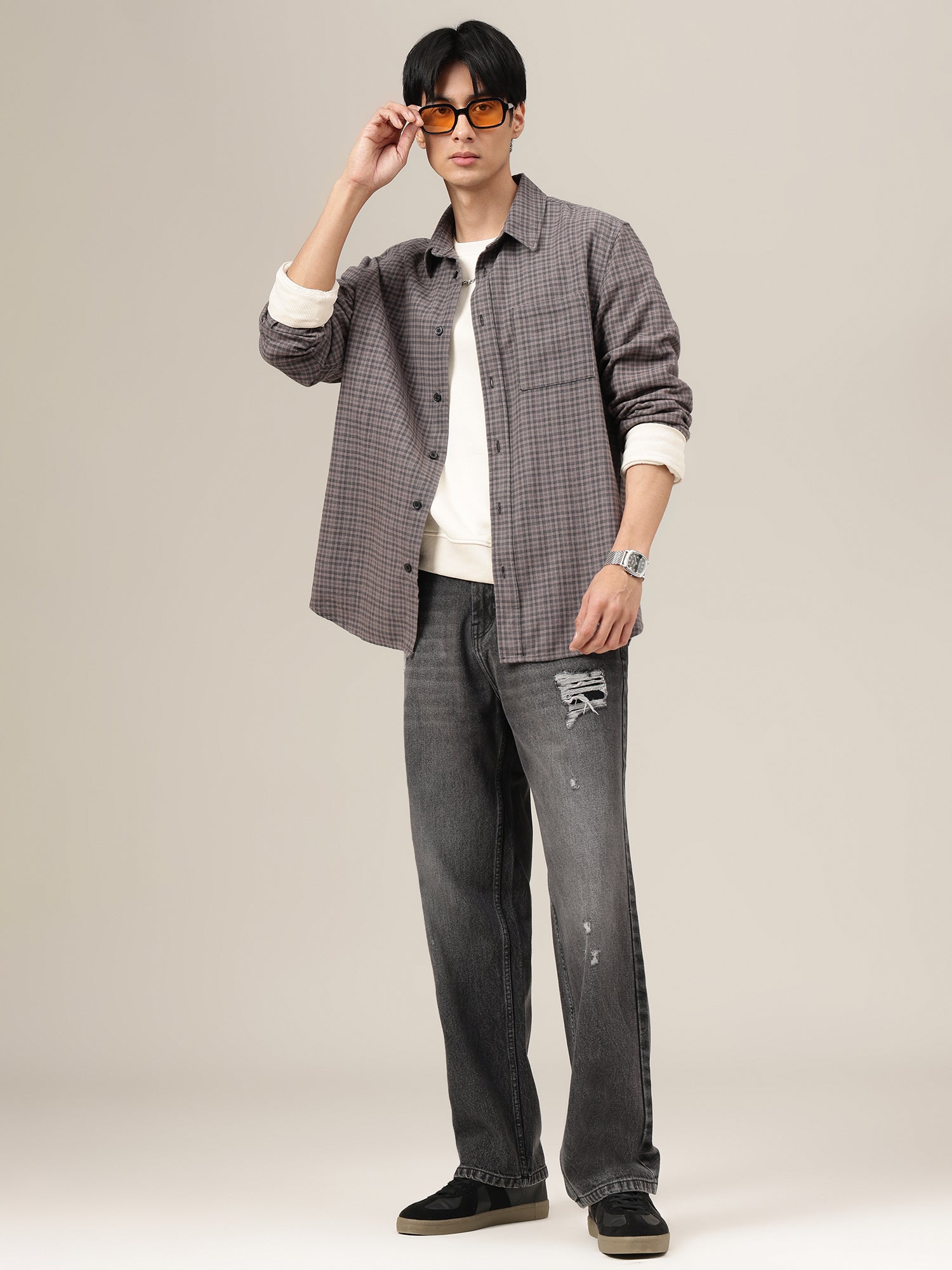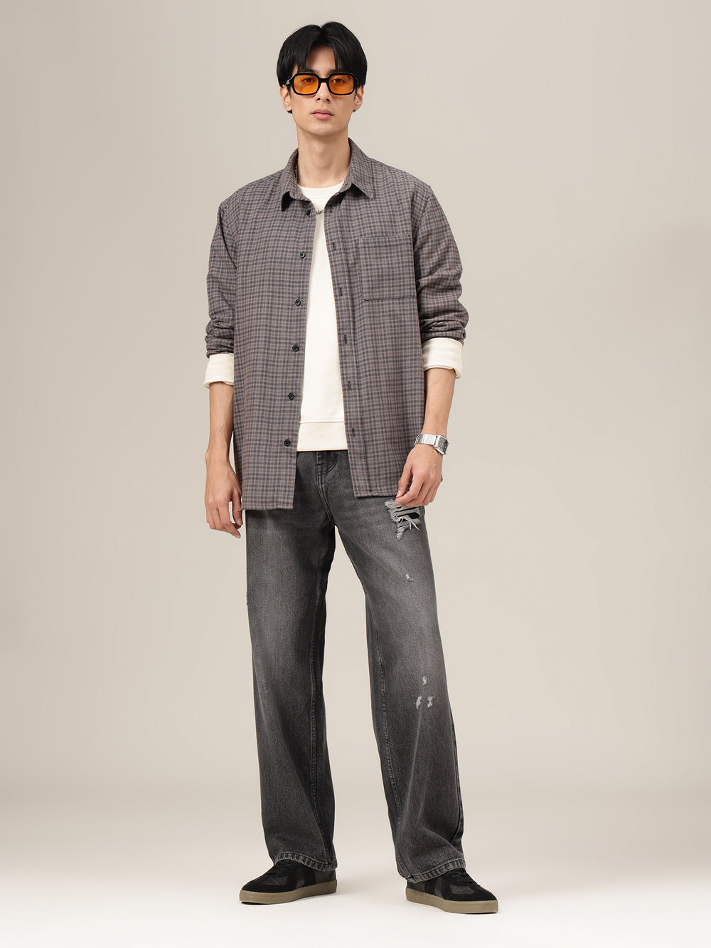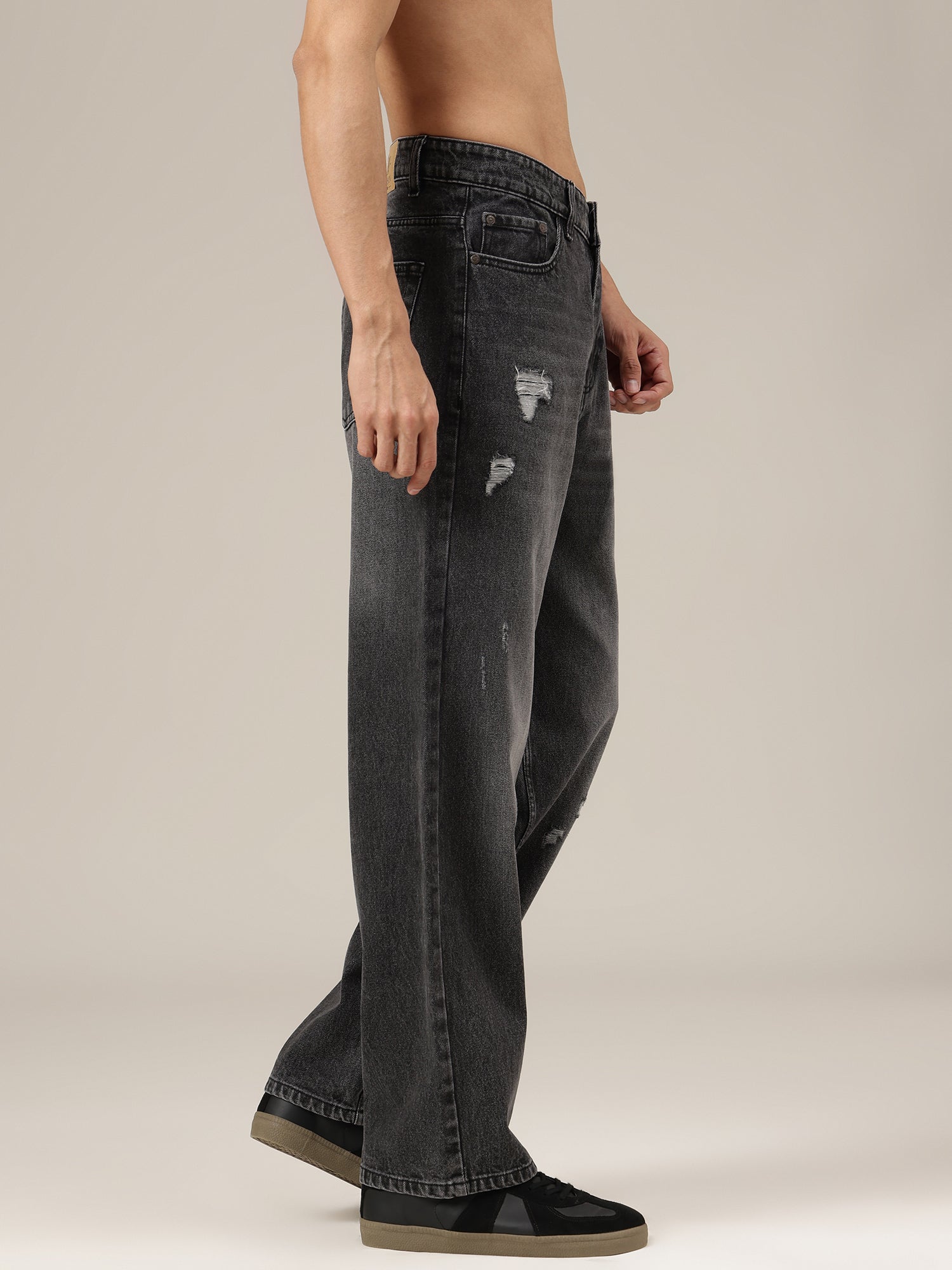 These Baggy Fit jeans combine a Dark Shade base with Light Faded and Mildly Distressed details, creating a bold, street-ready look that feels casual, contemporary, and effortlessly stylish.