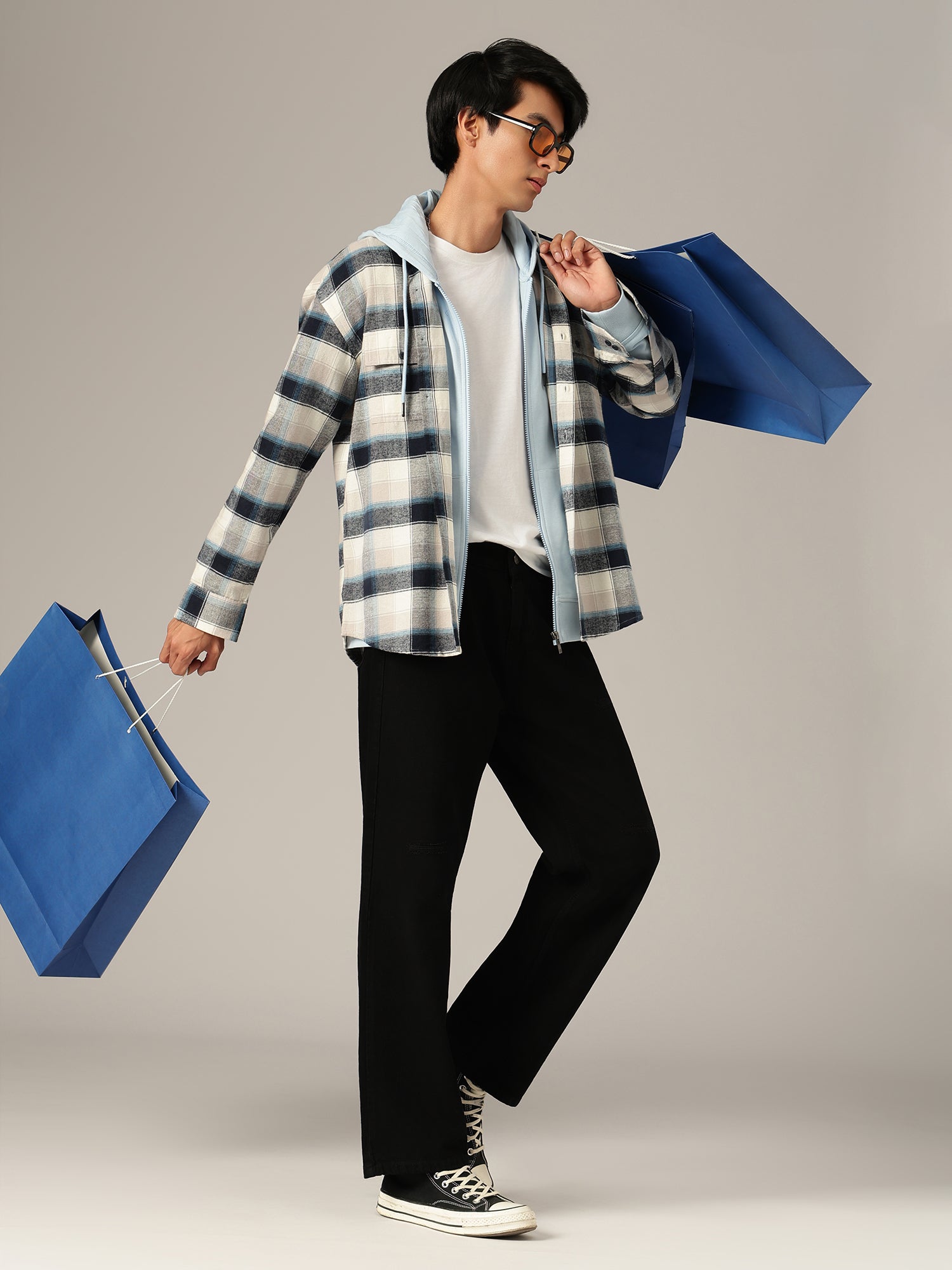 Oversized casual gingham checks shirt featuring a drop-shoulder, full sleeves, spread collar, double flap pockets, and curved hemline. Crafted for relaxed comfort with functional detailing and a modern silhouette for everyday wear.