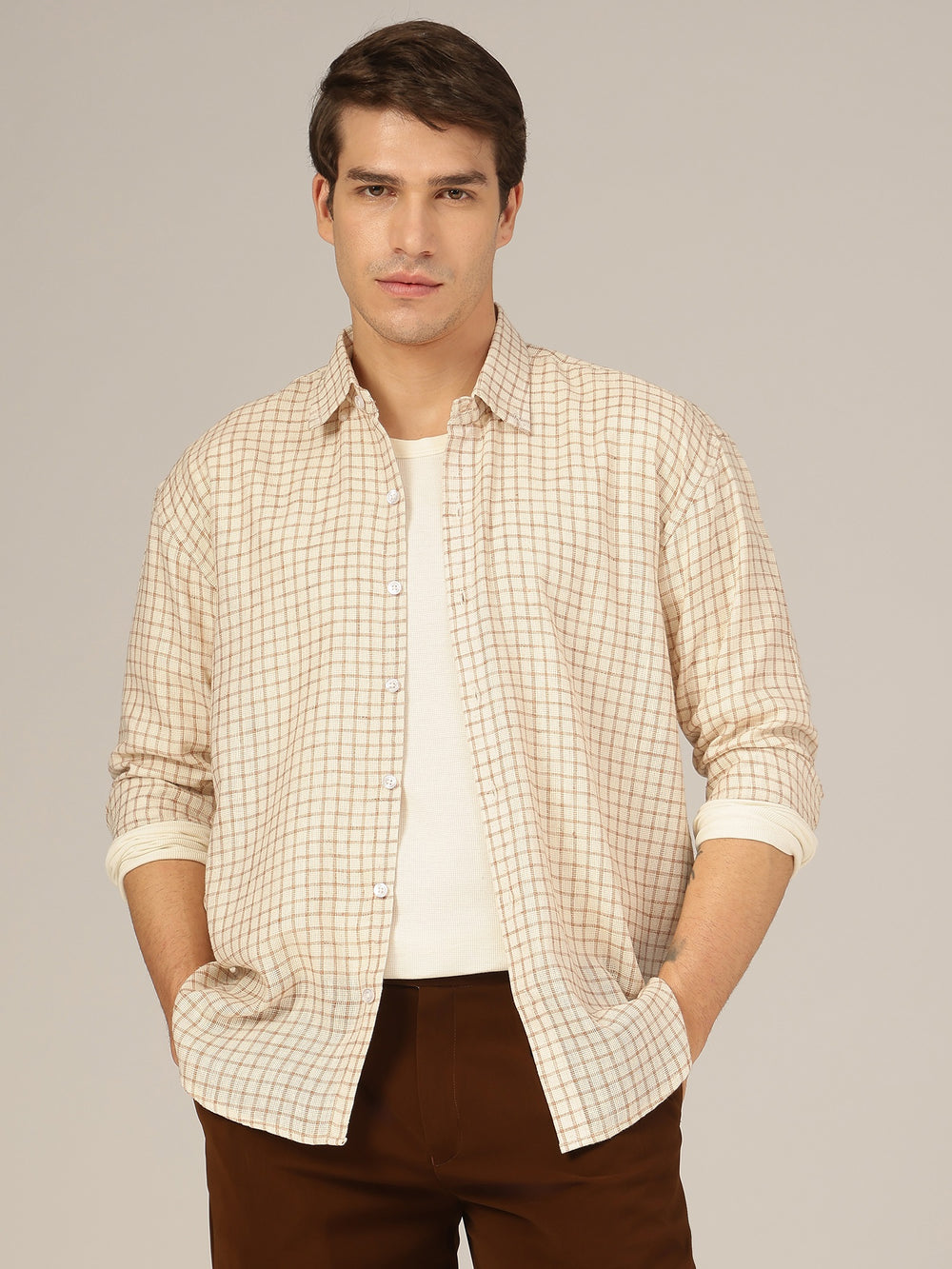 This Oversized Fit grid tattersall Check Shirt is crafted from soft, breathable cotton. Featuring Drop-Shoulder design, Full Sleeves, and a Button-Down Collar, it’s the perfect Casual Shirt for a relaxed, stylish look.