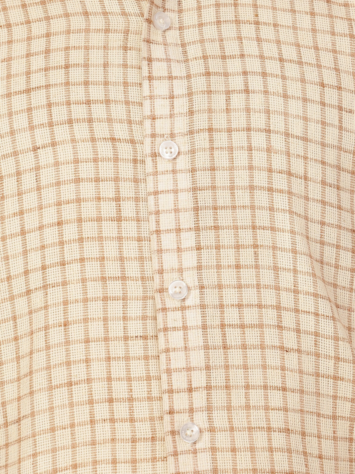 Cream & Brown: Checkered Button-Down Collar Casual Shirt