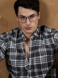 Crafted from soft cotton fabric, this oversized check shirt features a Cuban collar, drop shoulders, Long sleeves, and a curved hemline—ideal for breathable, everyday casual style with a trendy edge.