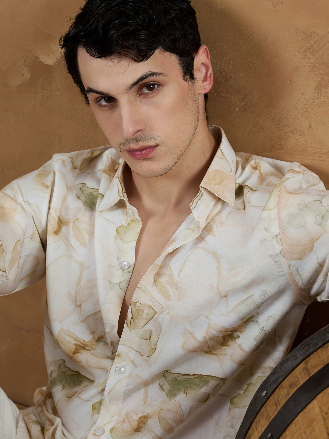 Cream & Brown: Marble Printed Shirt