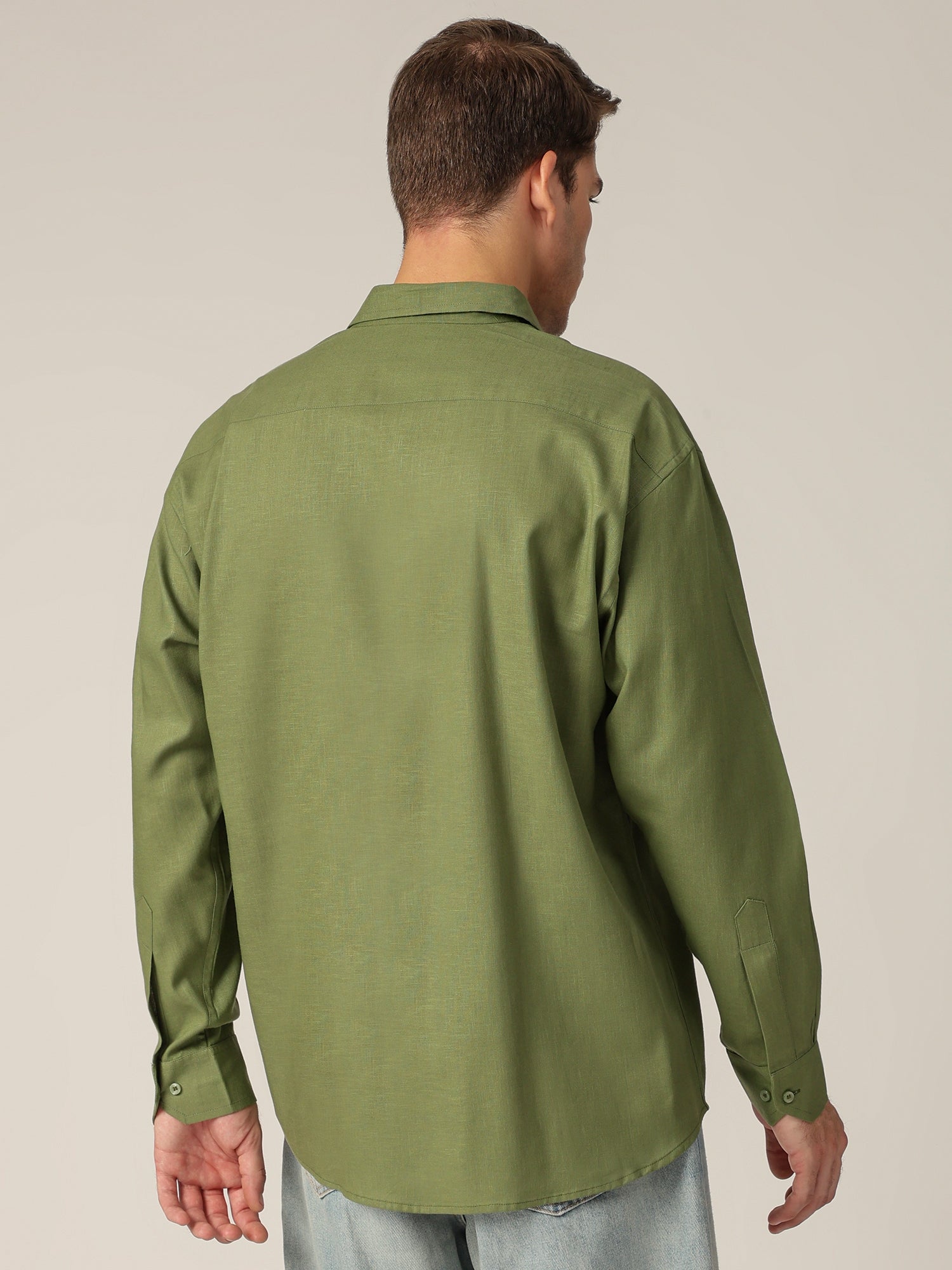 This Relaxed Fit Casual Shirt is crafted from Sustainable Lyocell Linen for lightweight comfort. Featuring a Solid design, No Pocket, Full Sleeves, Spread Collar, Curved Hemline, and an Embroidered Brand Logo.