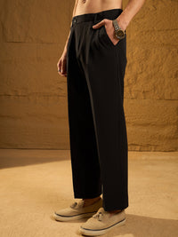 These Baggy Fit Korean Trousers are tailored from smooth polyester, featuring refined double pleats, four pockets, and a secure button and fly zip closure—perfect for elevated yet relaxed casual trouser styling.