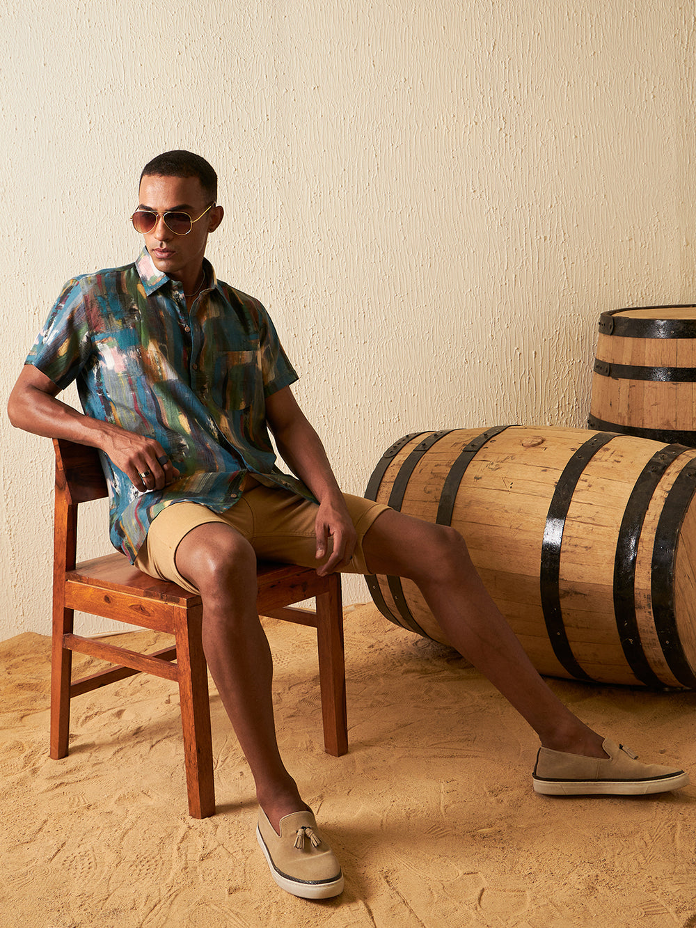 Multi Color abstract printed opaque Casual shirt, has a spread collar, button placket, 1 patch pocket, short regular sleeves, straight hem
