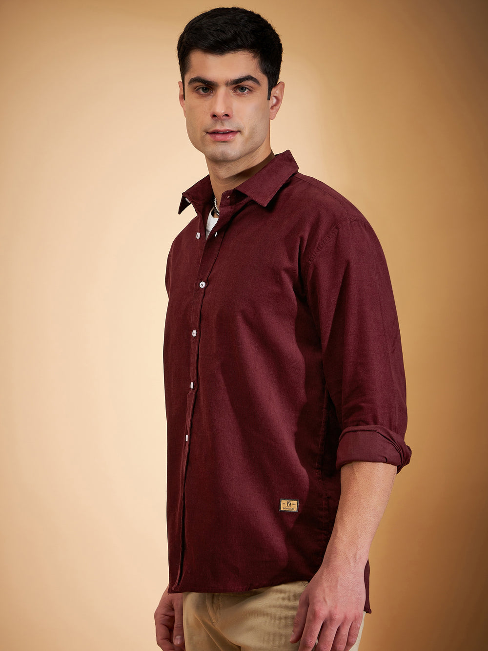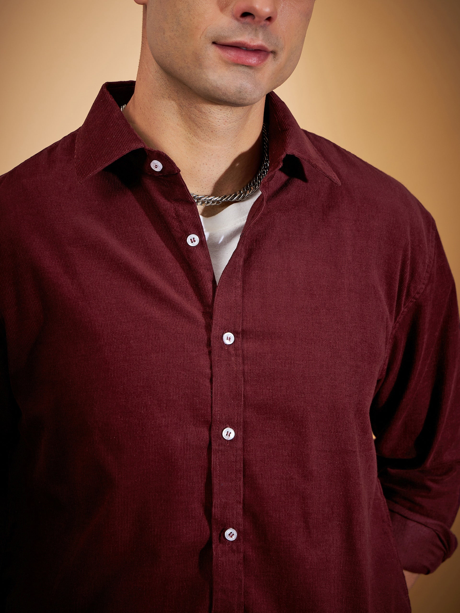 Maroon solid opaque casual shirt ,has a spread collar, button placket, long regular sleeves, curved hem