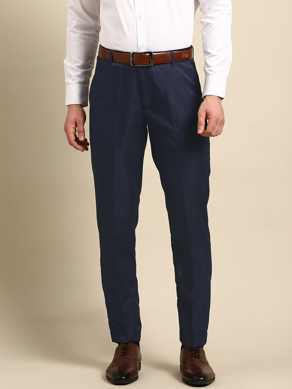 Maintain a handsome style with these classically designed trousers made by DENNISON. You can match this navy blue pair with a lightweight sweater and leather boots when you're going to a work luncheon.
