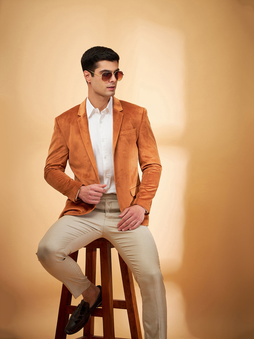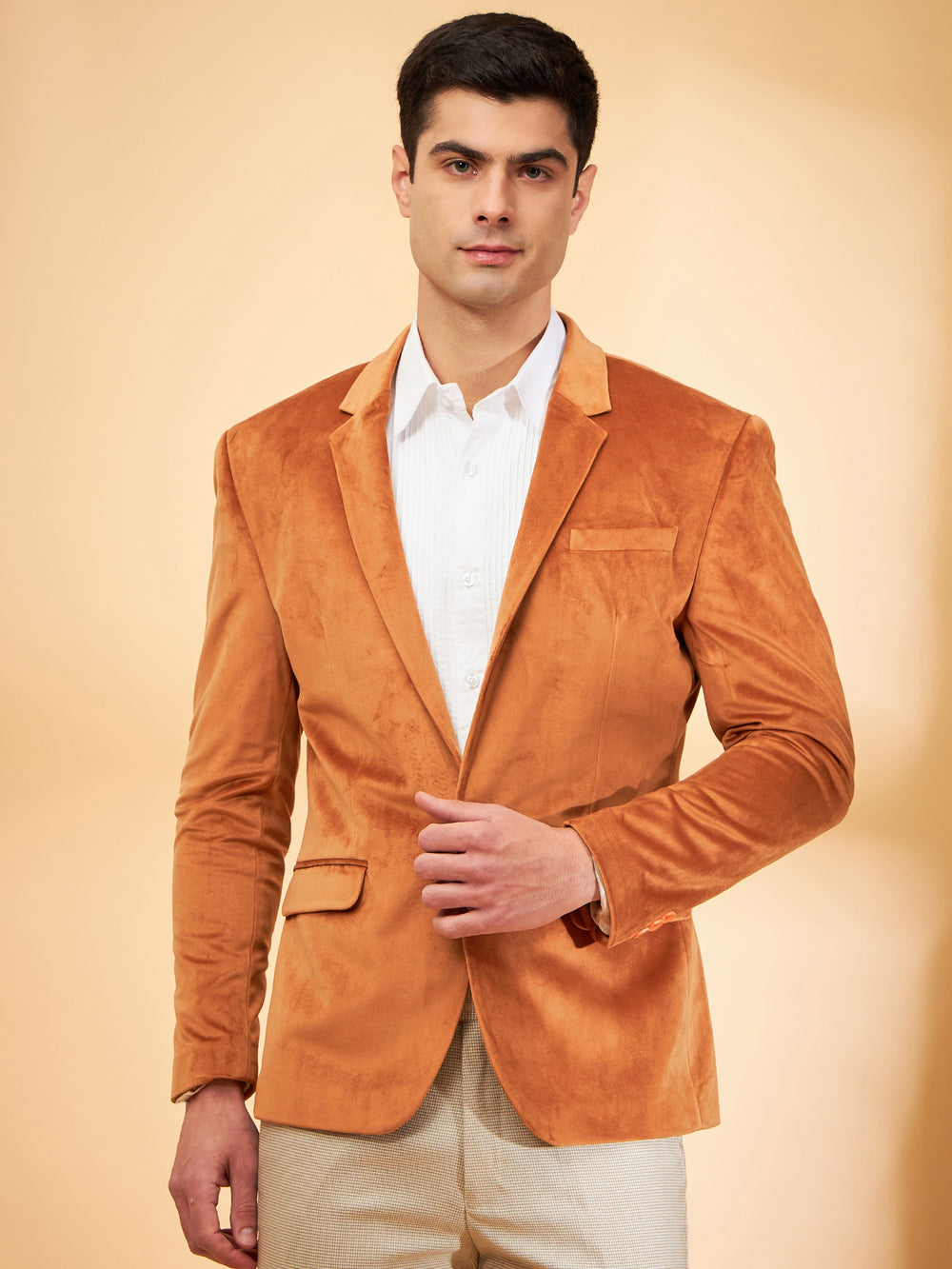 DENNISON Men Rust Single-Breasted Velvet Blazer