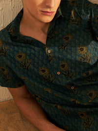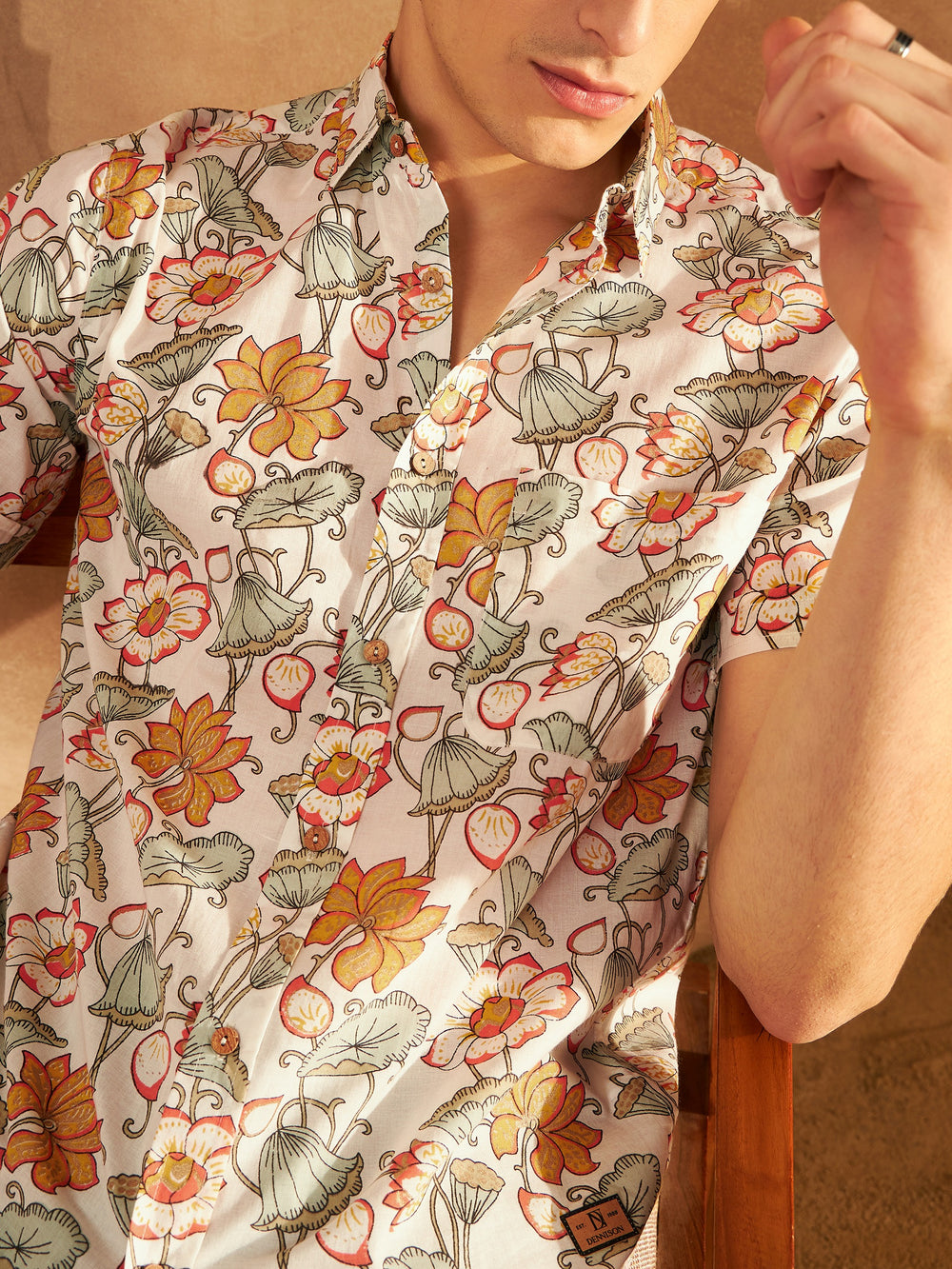 Cream & Mustard: Half Sleeves Block Printed Shirt