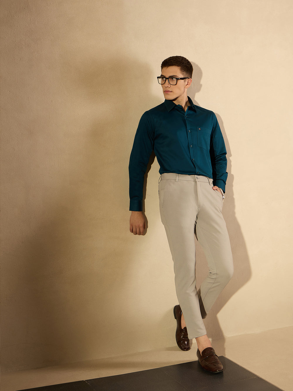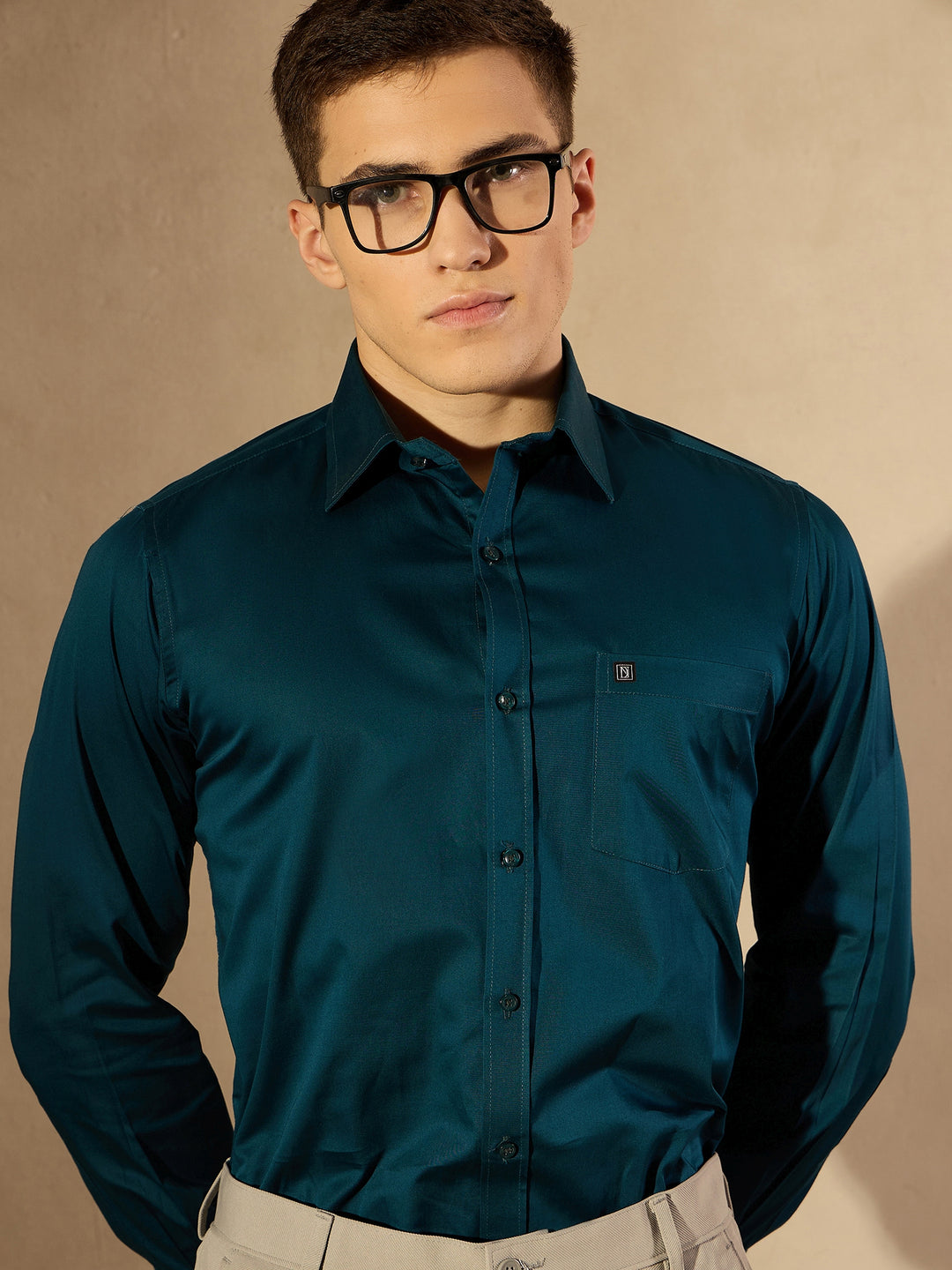 color — DENNISON Teal Blue Pure Cotton Formal Shirt