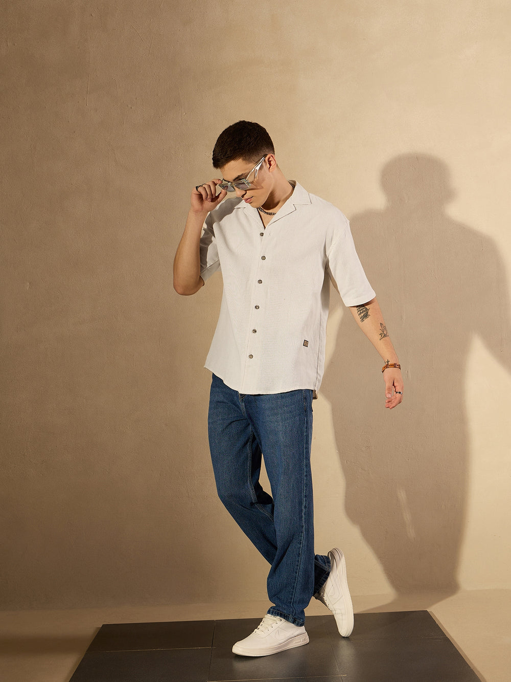 White: Half Sleeves Oversized Casual Shirt
