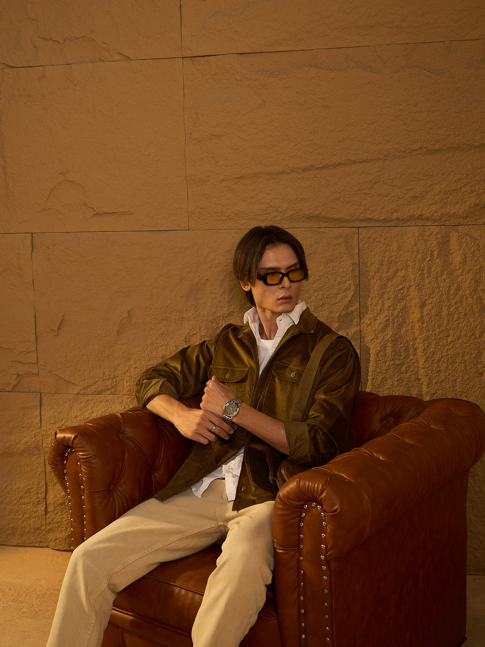 A cozy, versatile oversized shacket crafted from Corduroy with a Four-pocket design and dropped shoulders for a relaxed fit. The full sleeves and timeless Solid pattern add casual-chic appeal, perfect for layering any season.